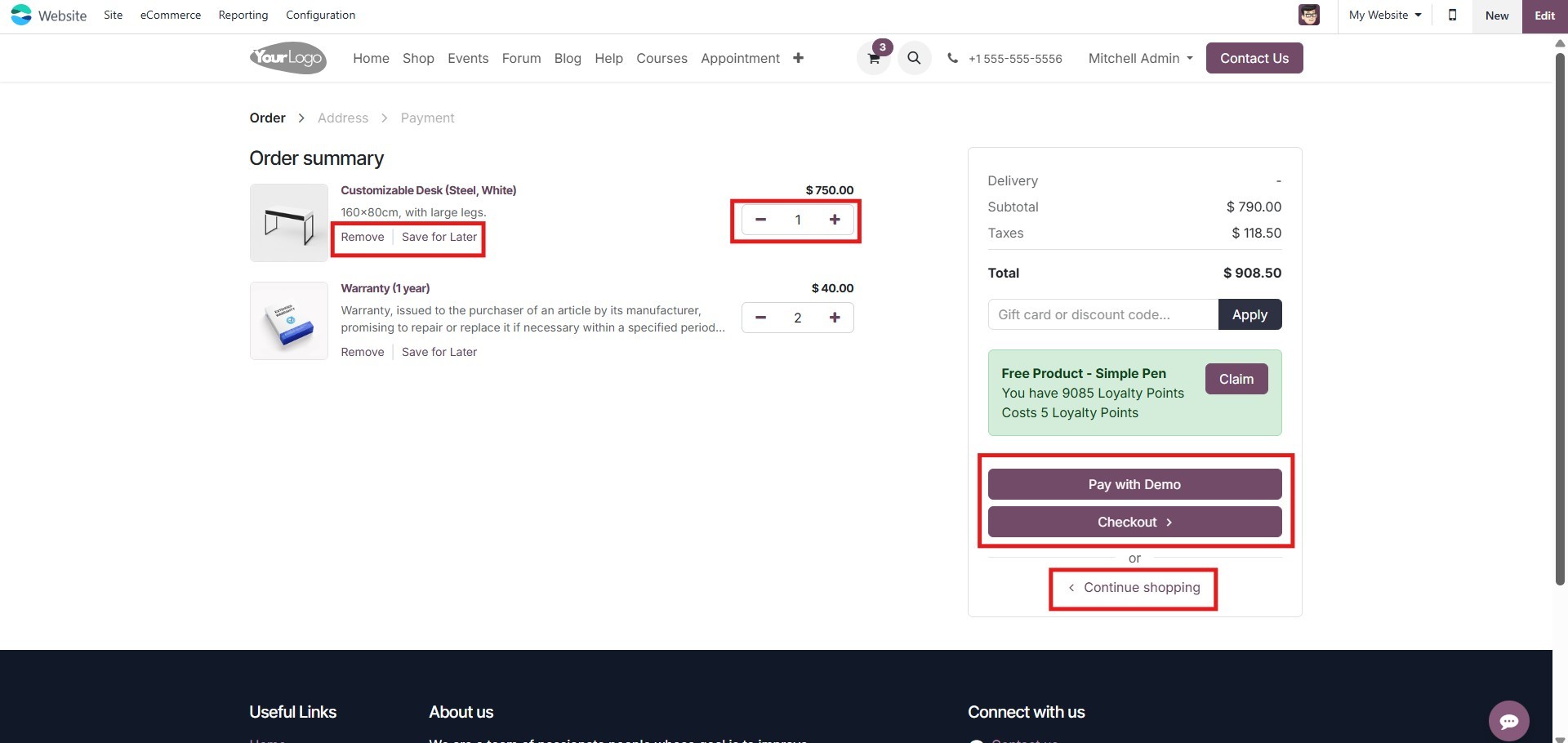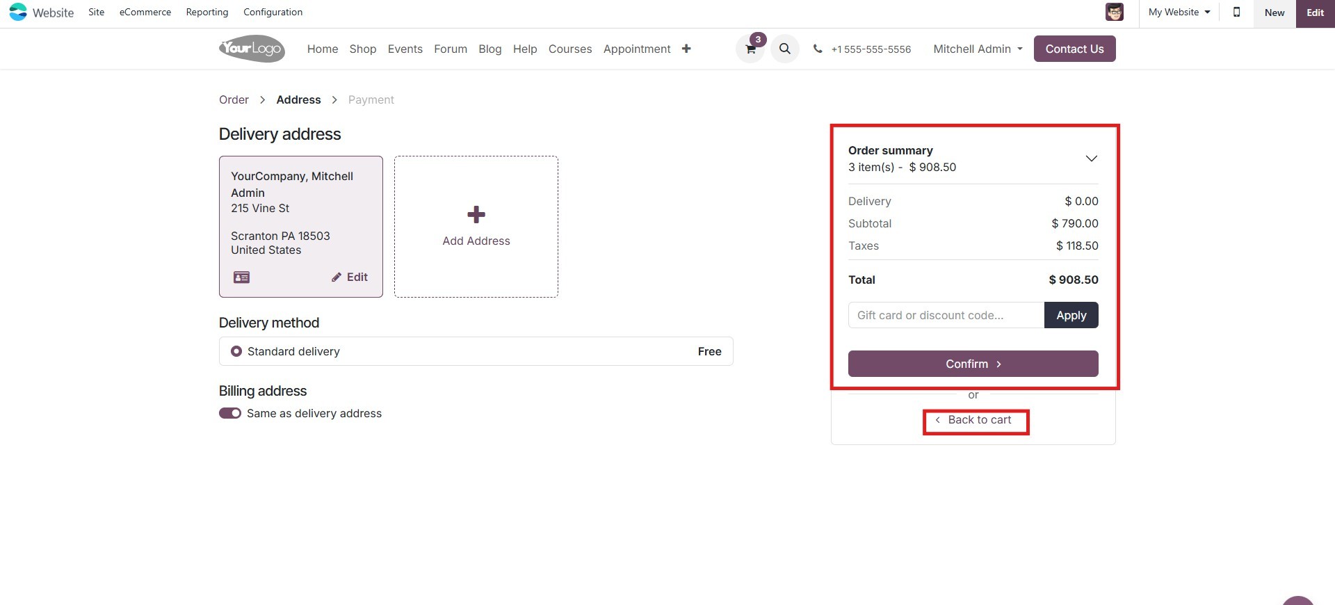 As illustrated in the cart page