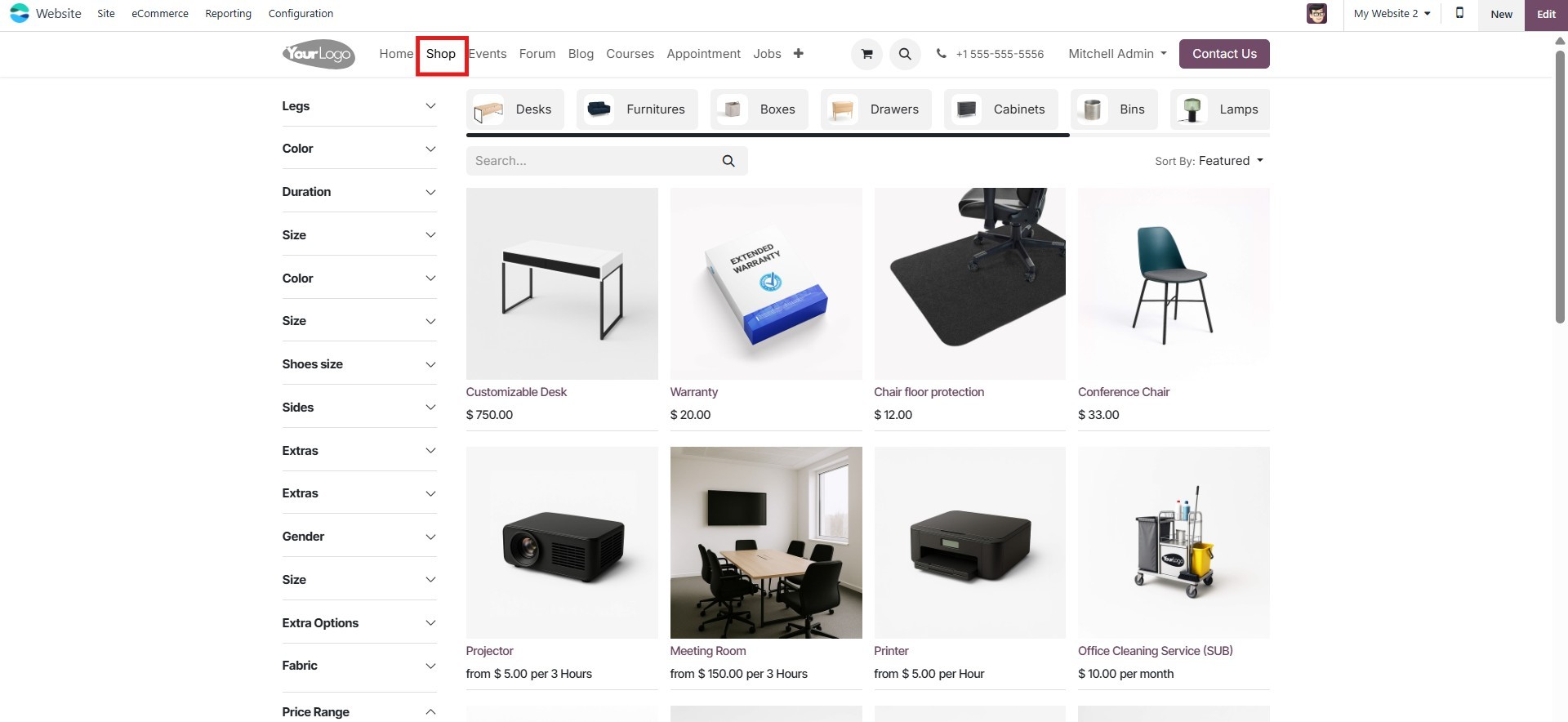 navigate to the Shop section