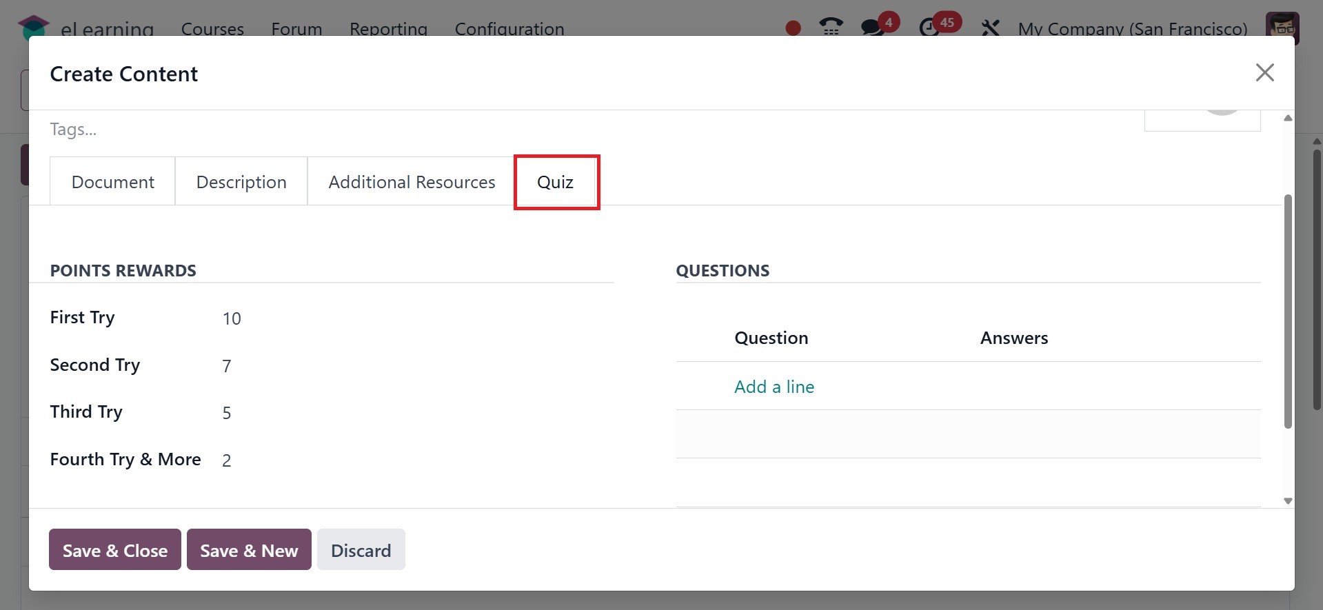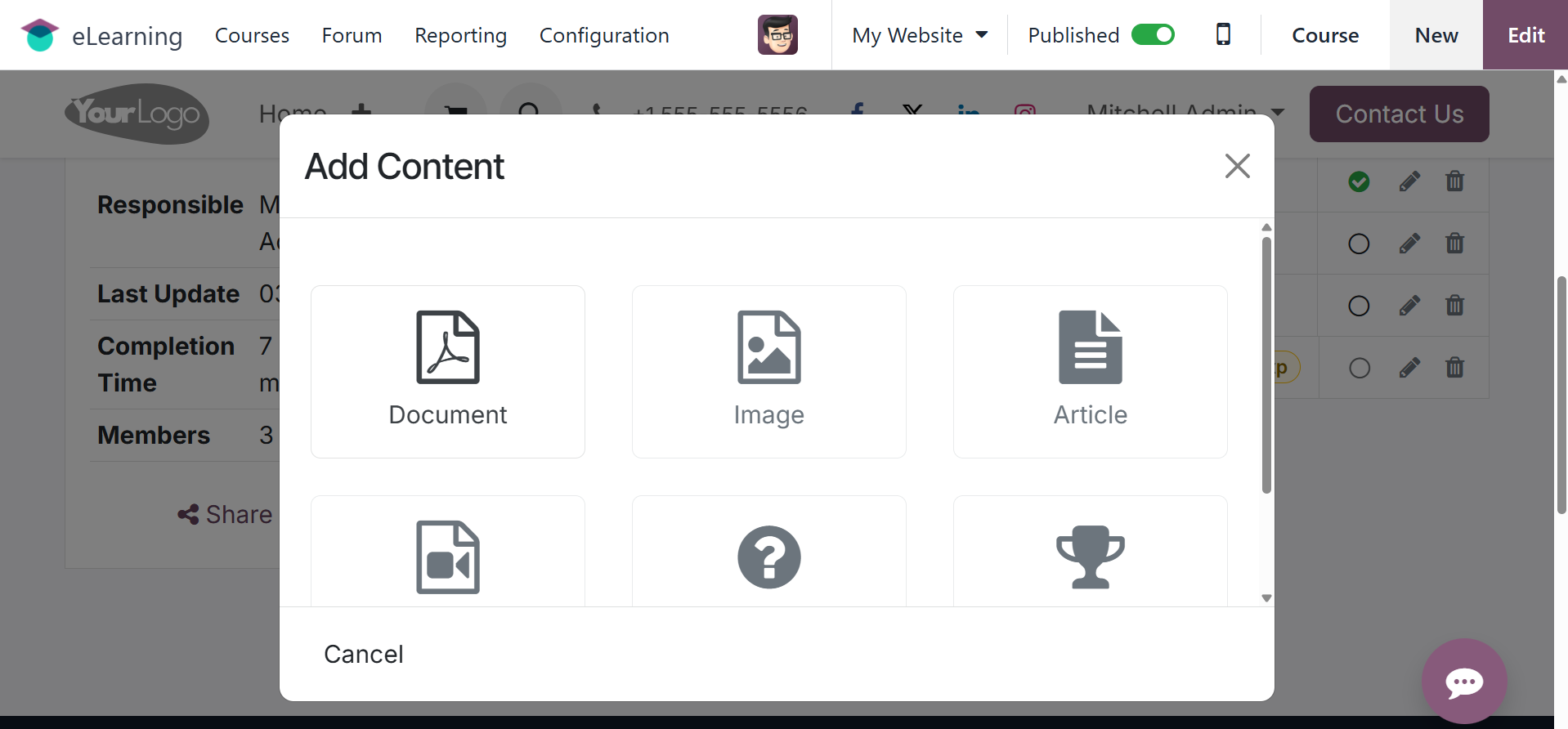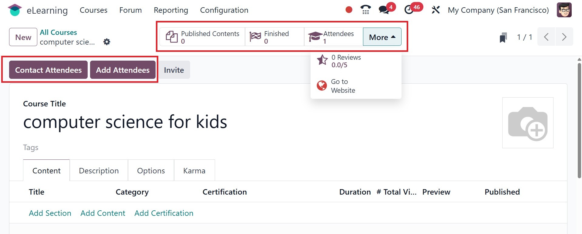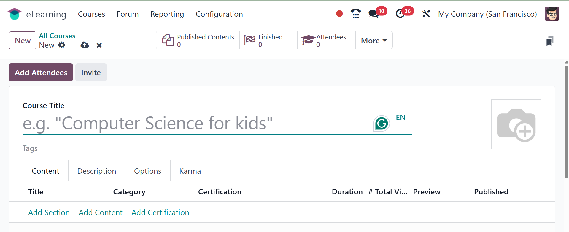 The Odoo 18 eLearning module has