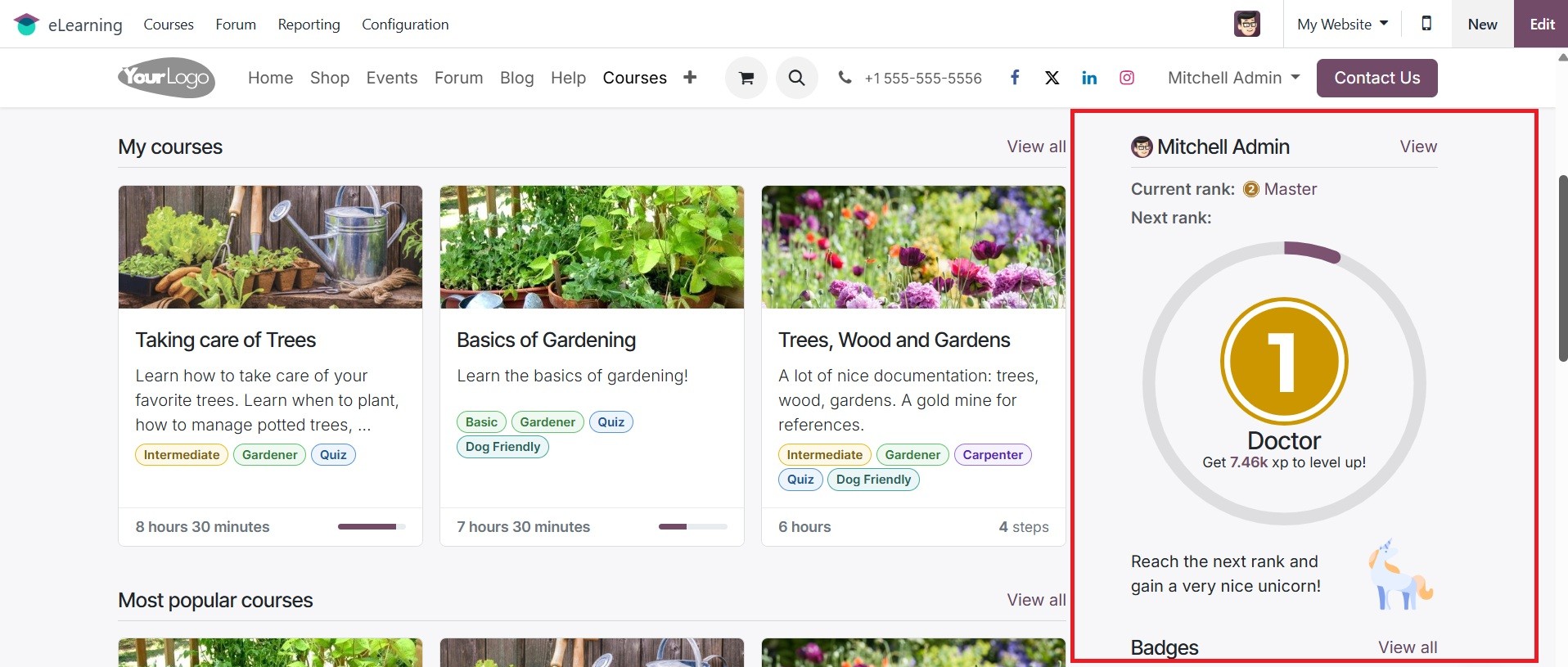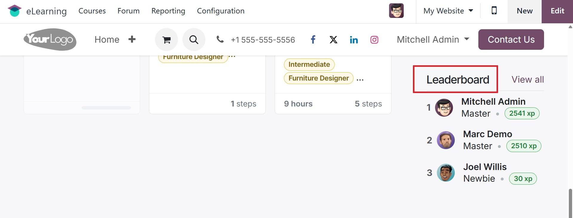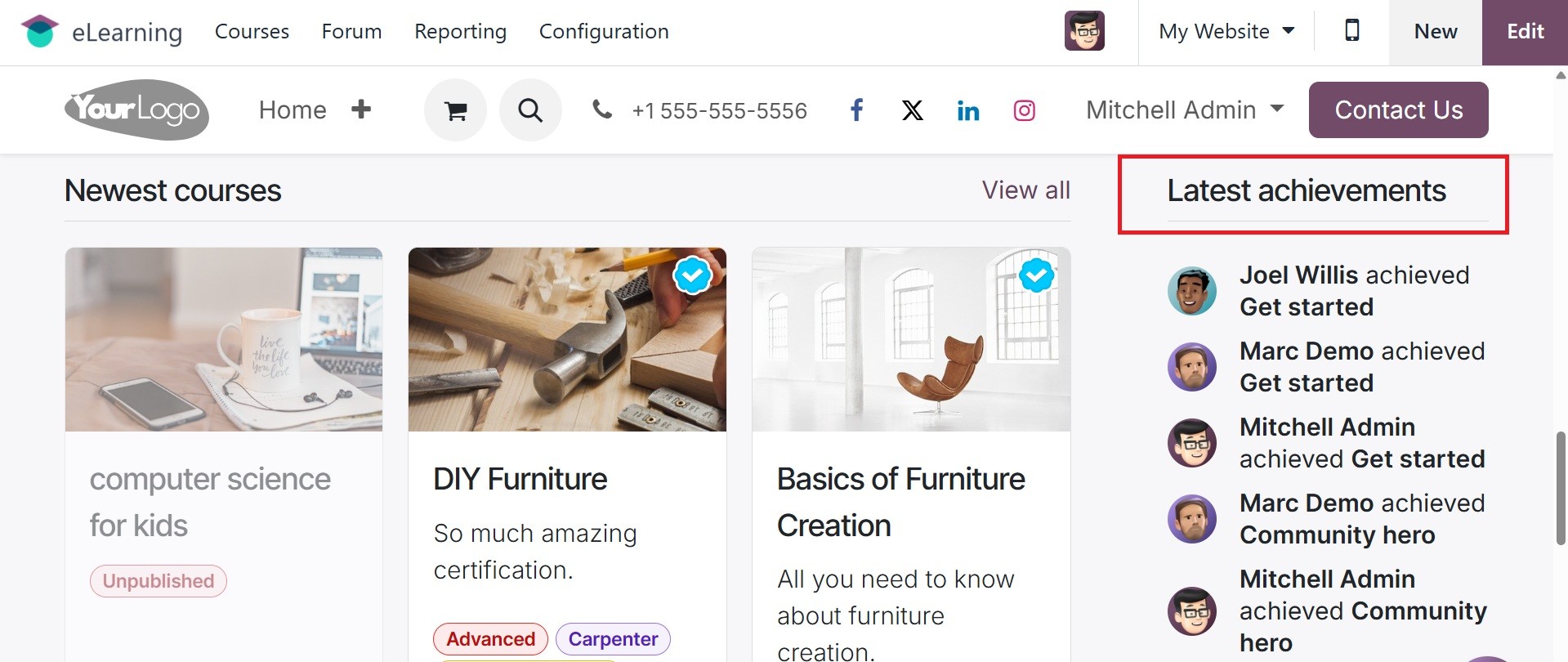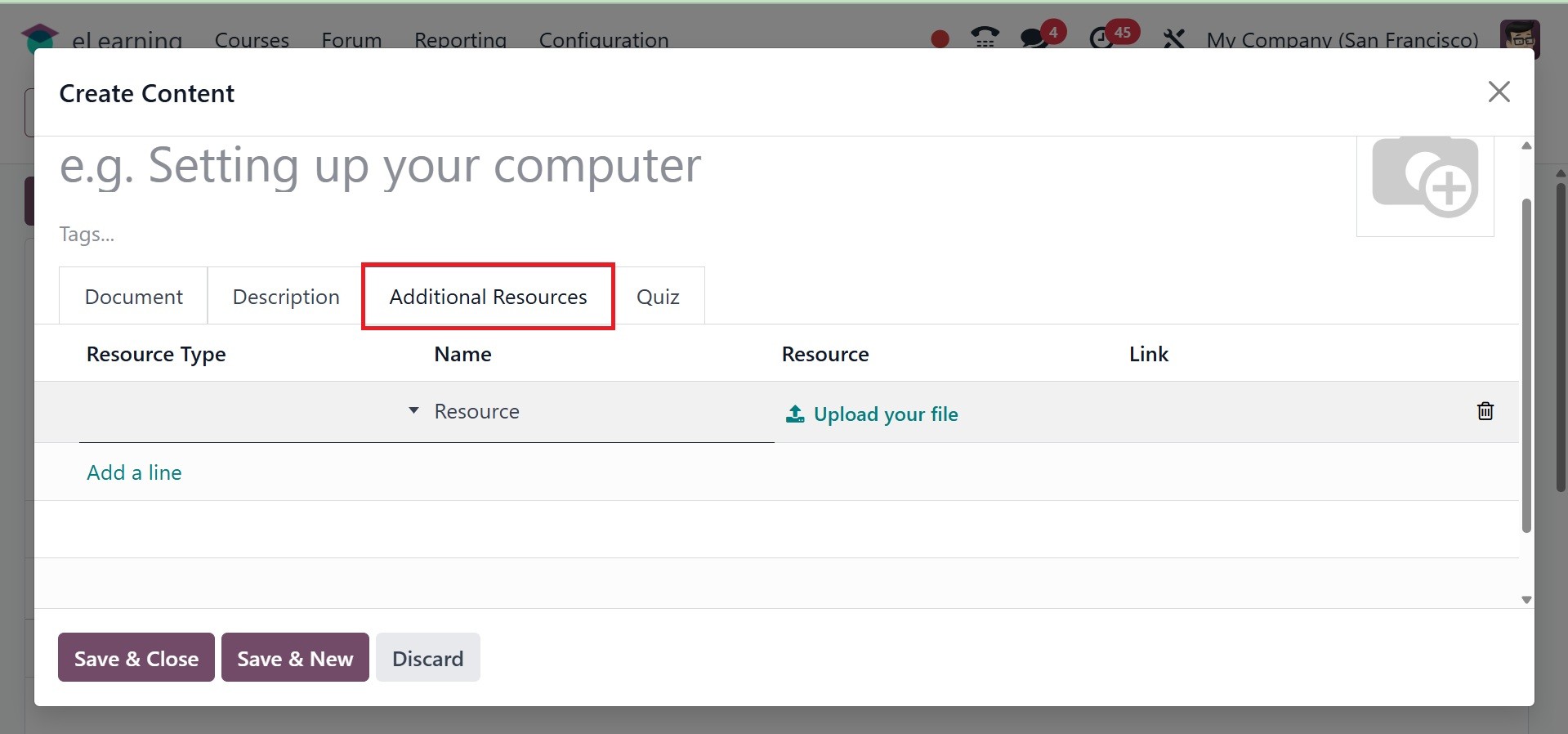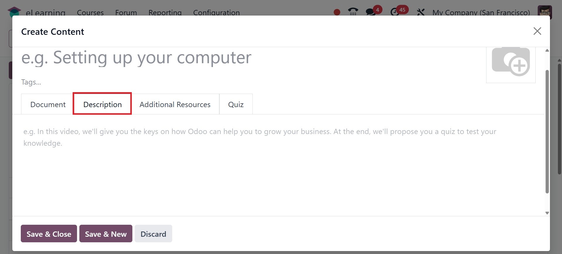 The Odoo 18 eLearning module has