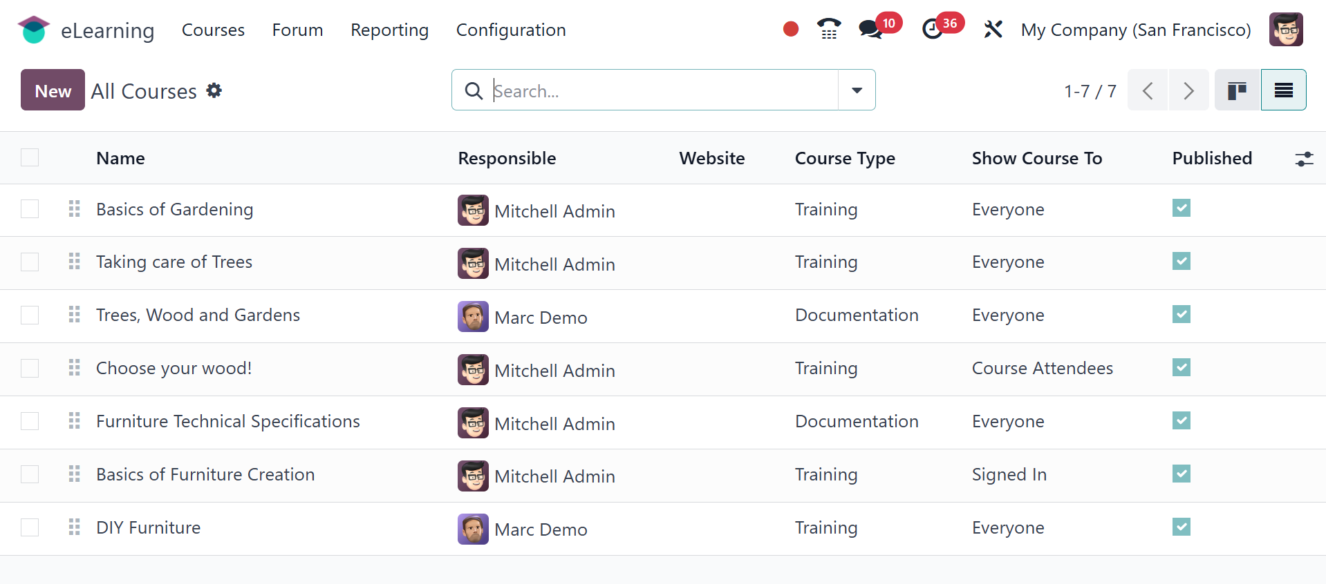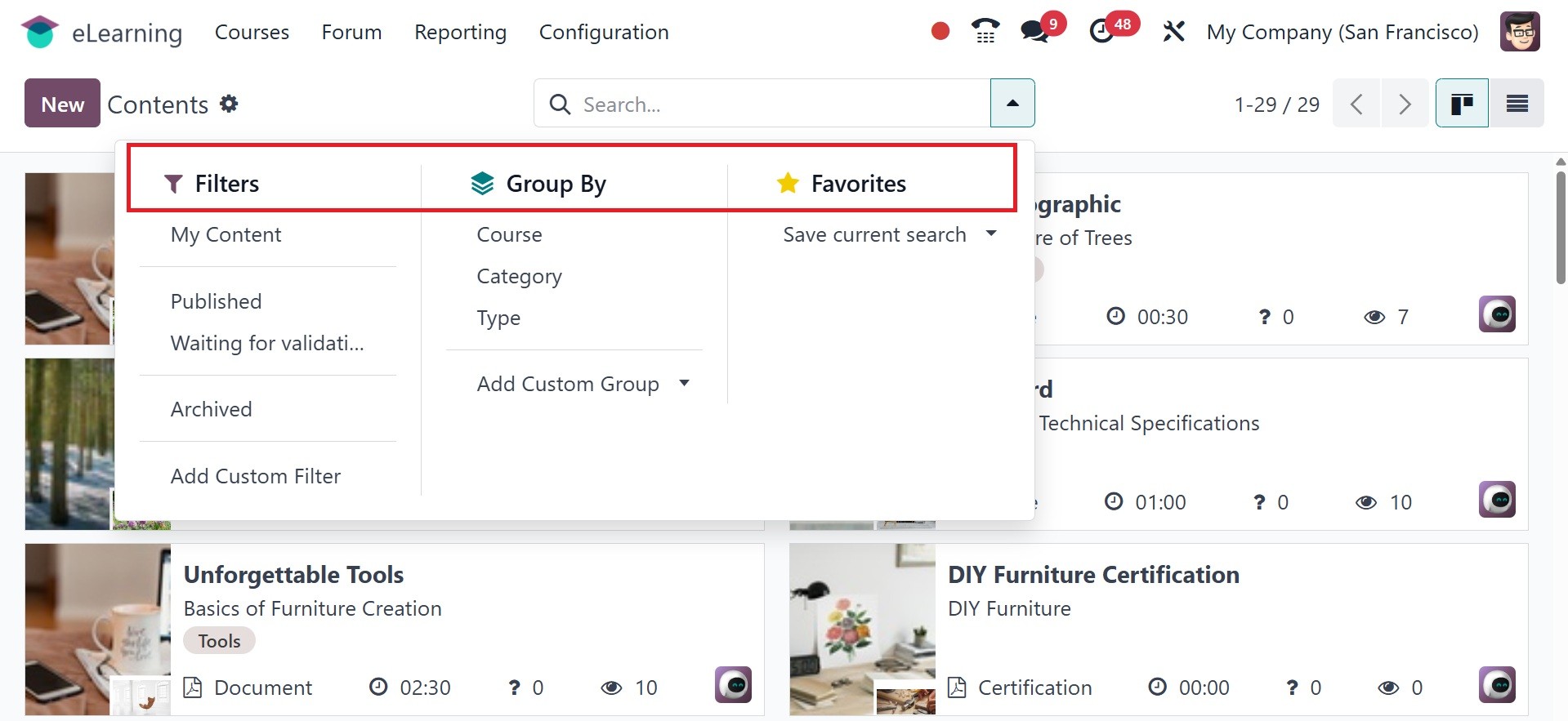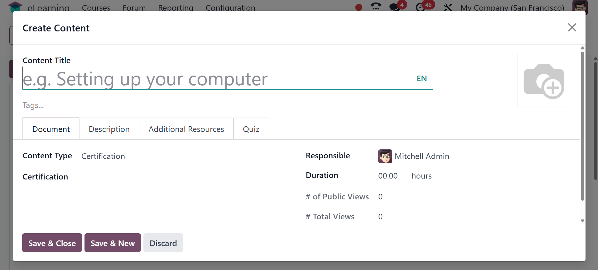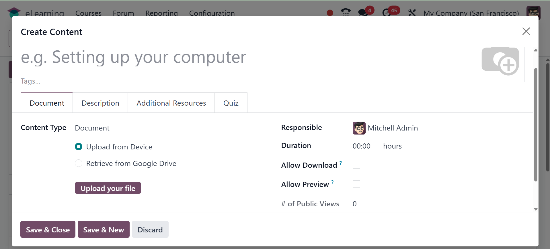 The Odoo 18 eLearning module has