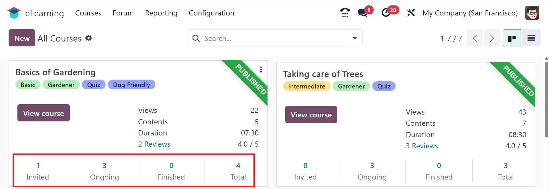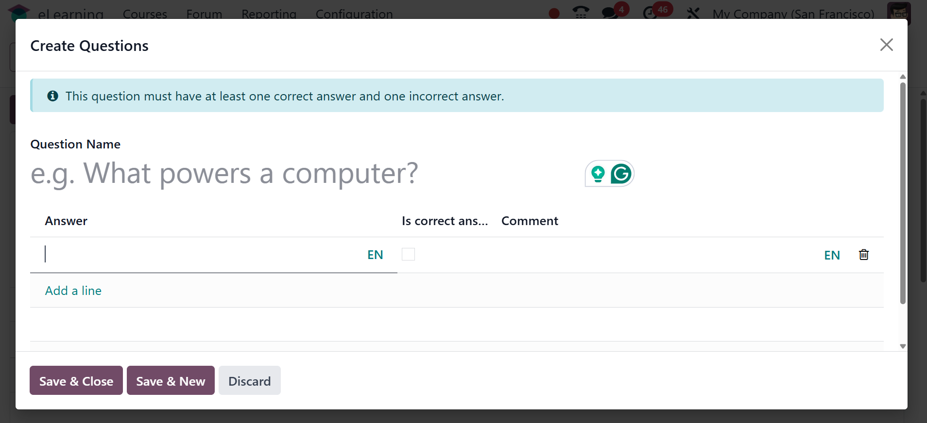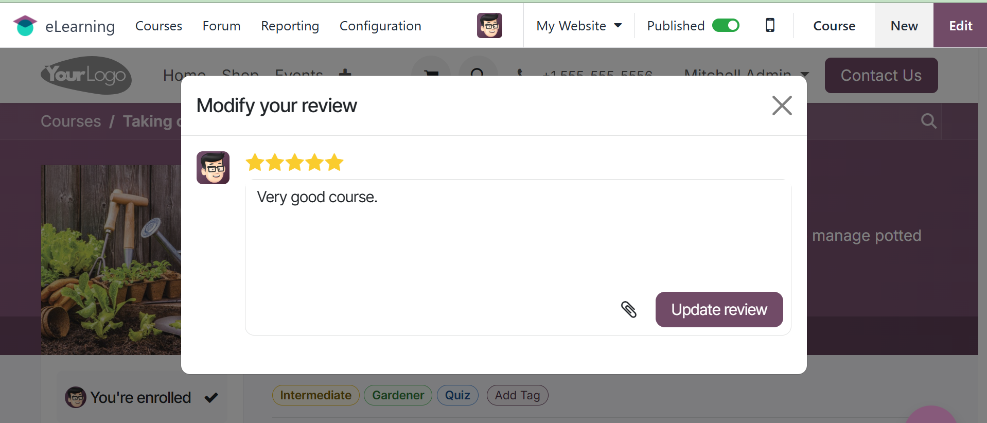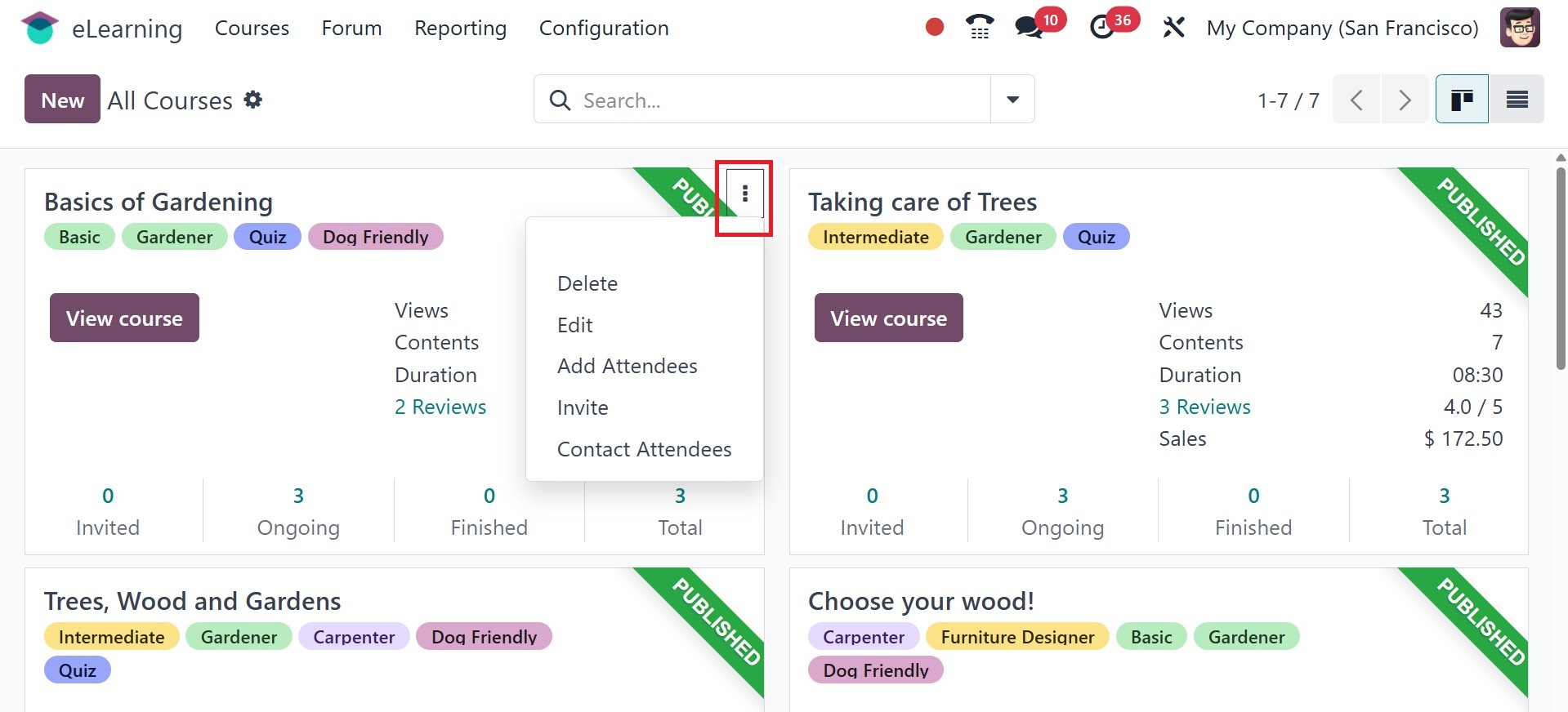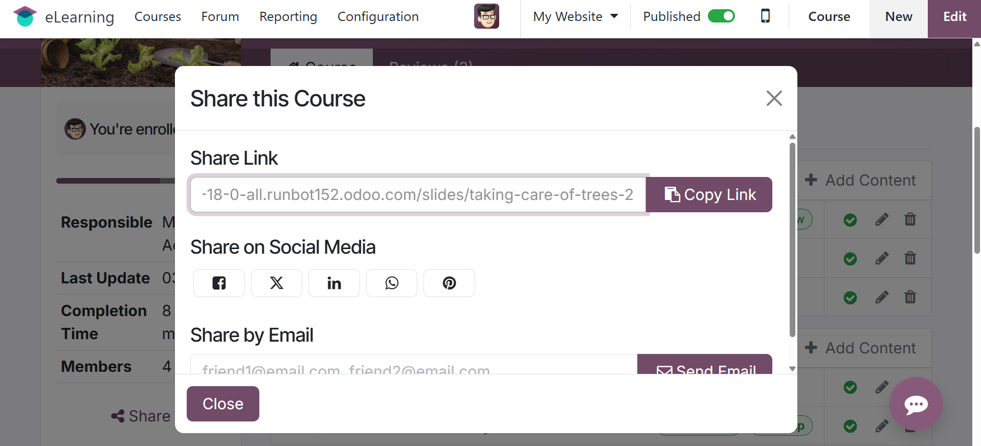 The Odoo 18 eLearning module has