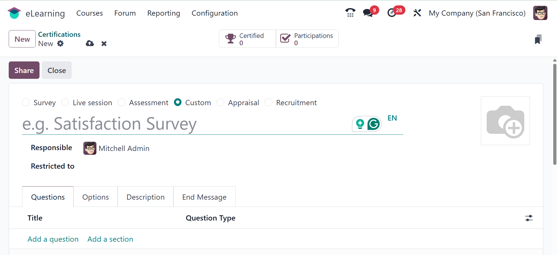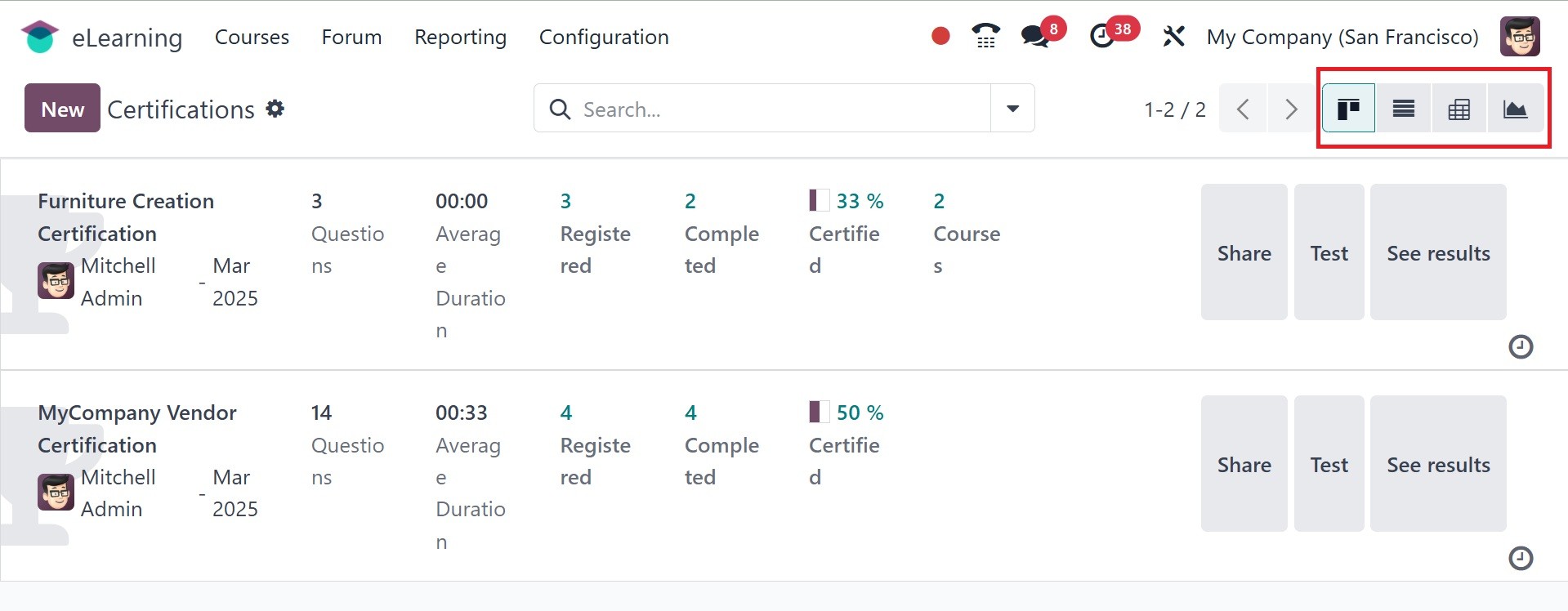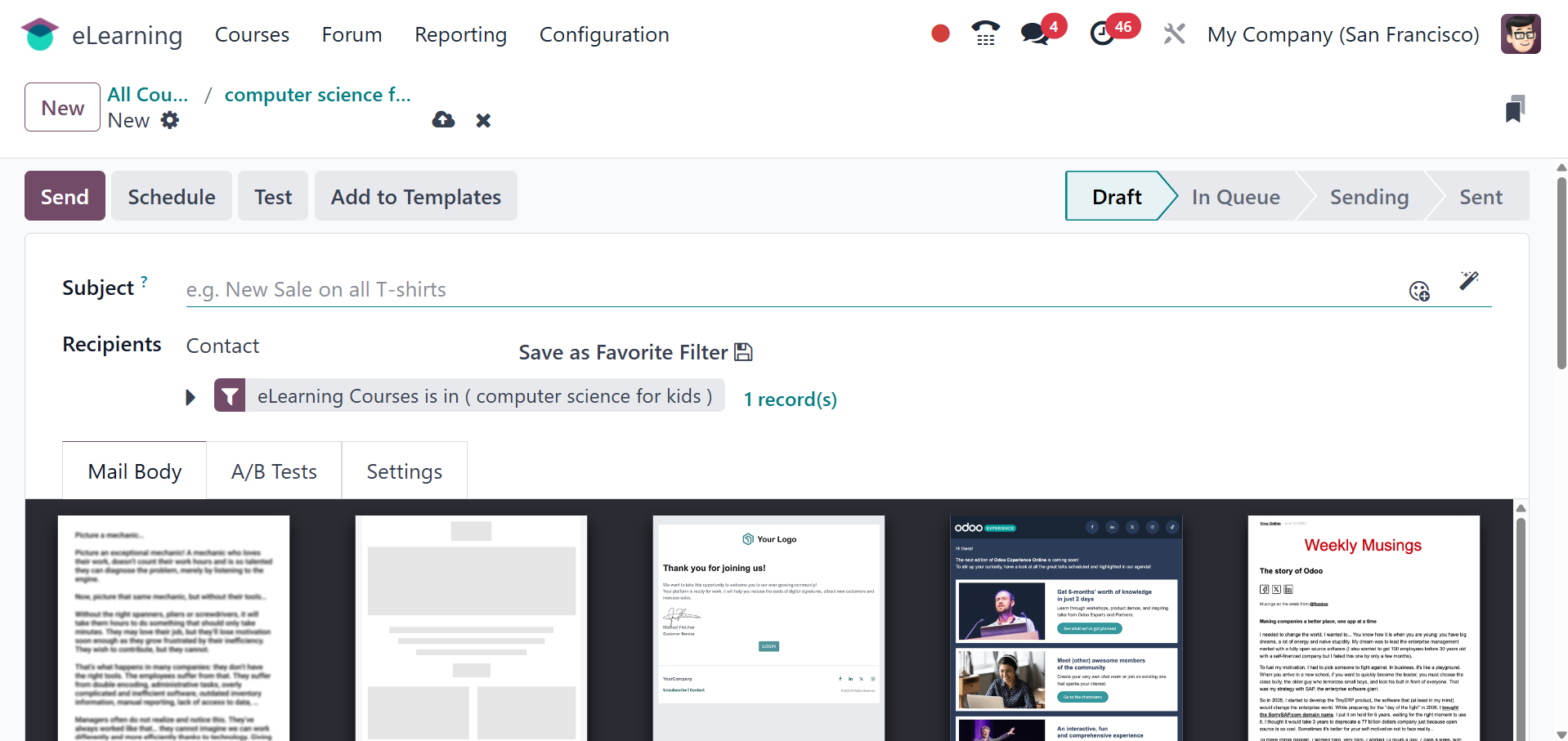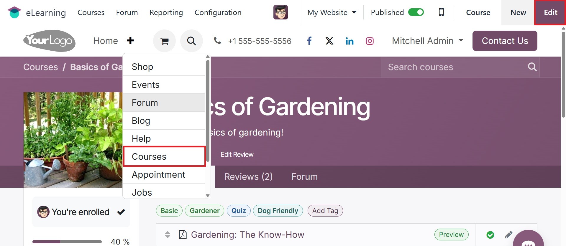 The Odoo 18 eLearning module has