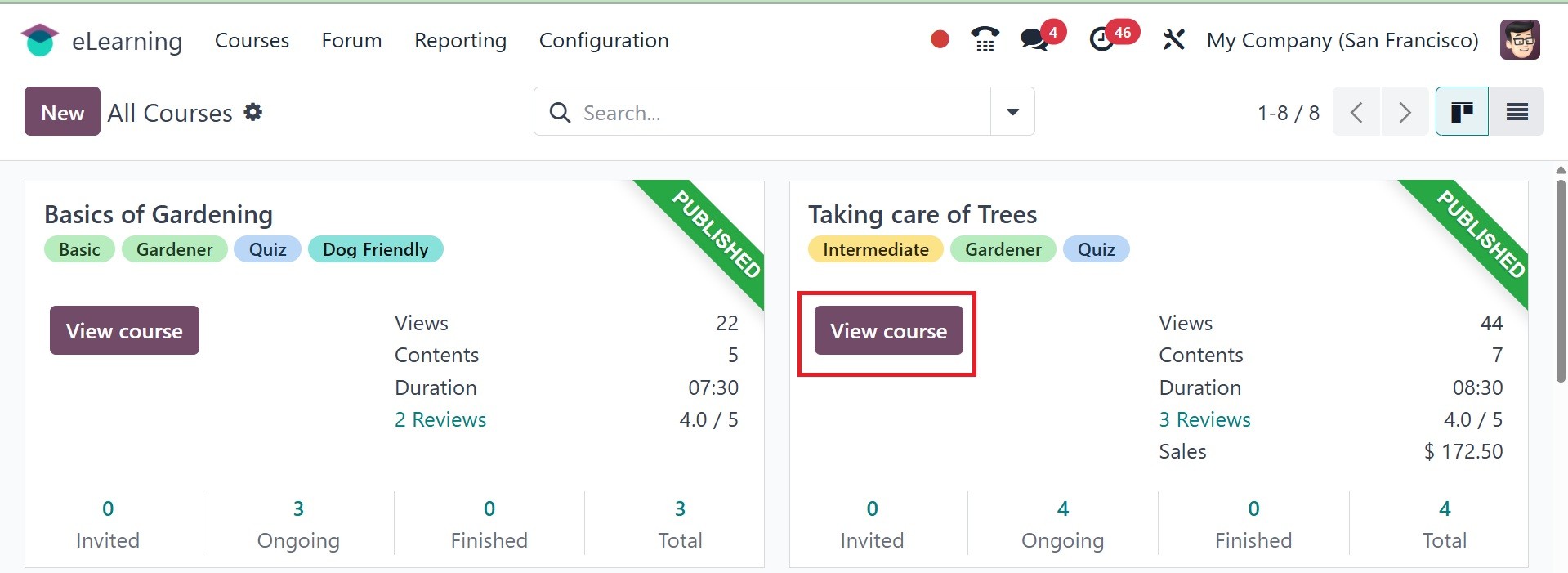 may select the View Course