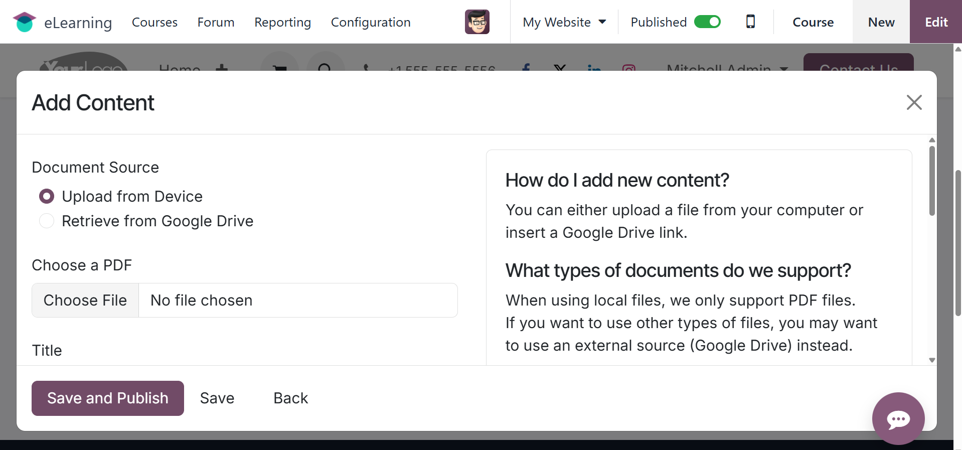 Add the course title and choose