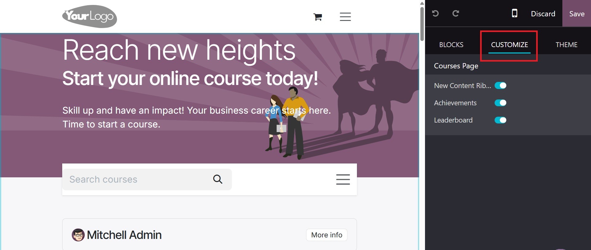 get the option in the courses