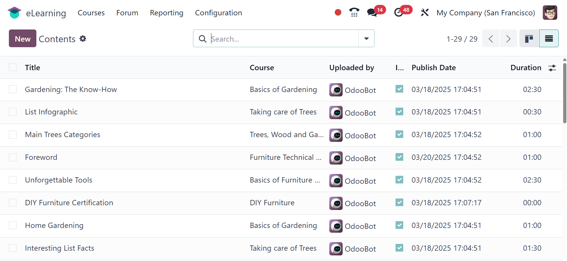 The List View for the course is