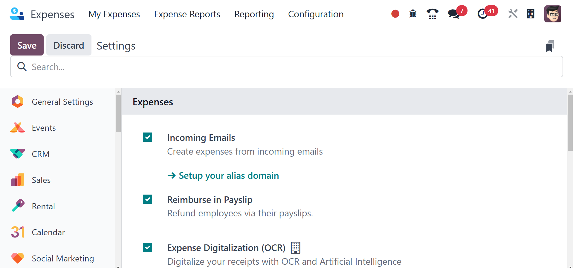 enabled the Incoming Emails option under Expenses. First, you need