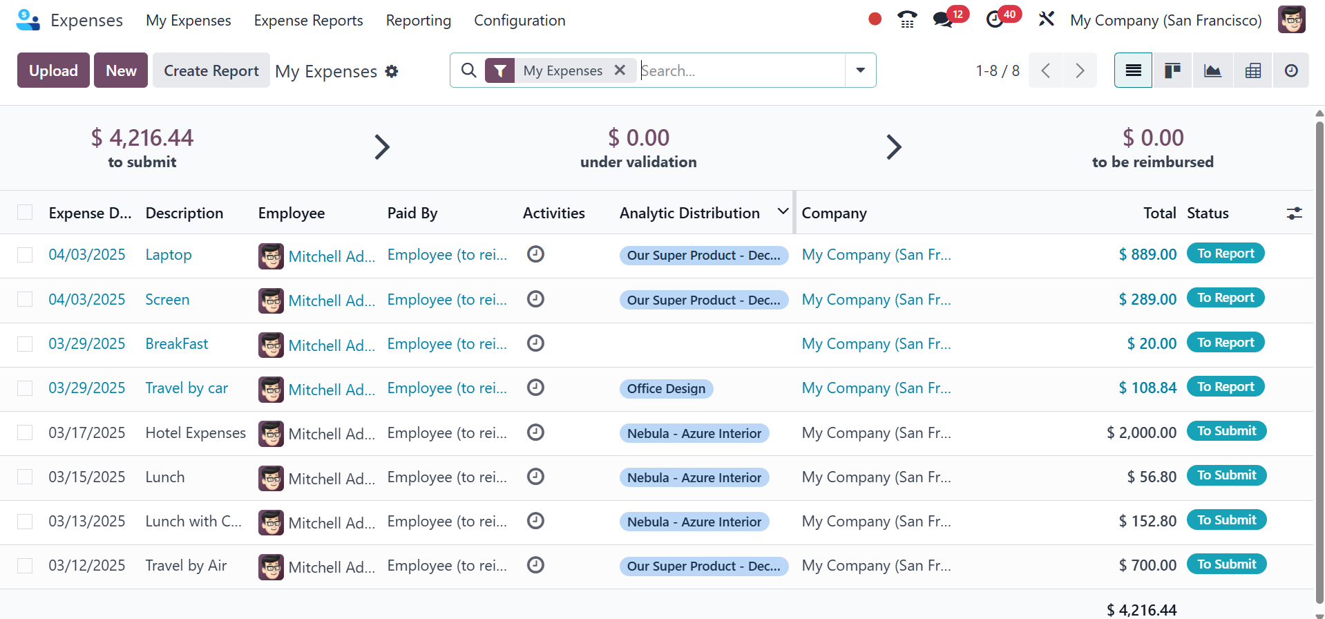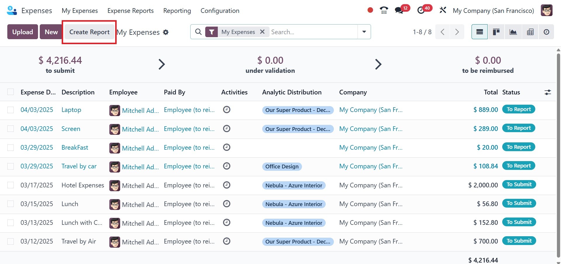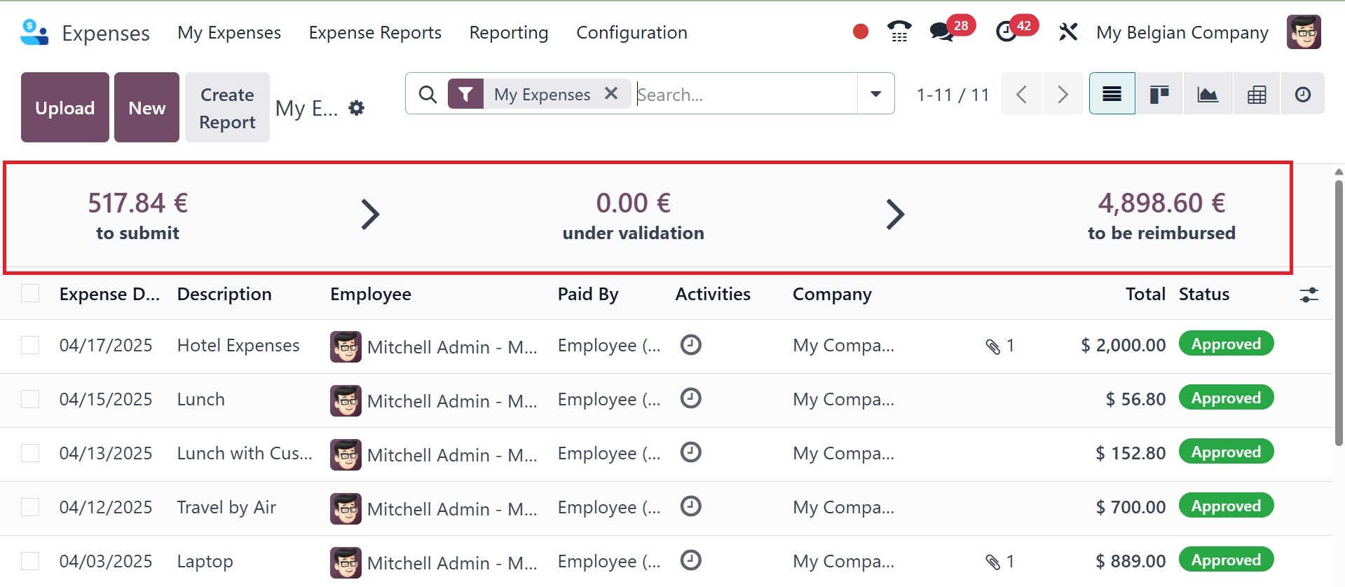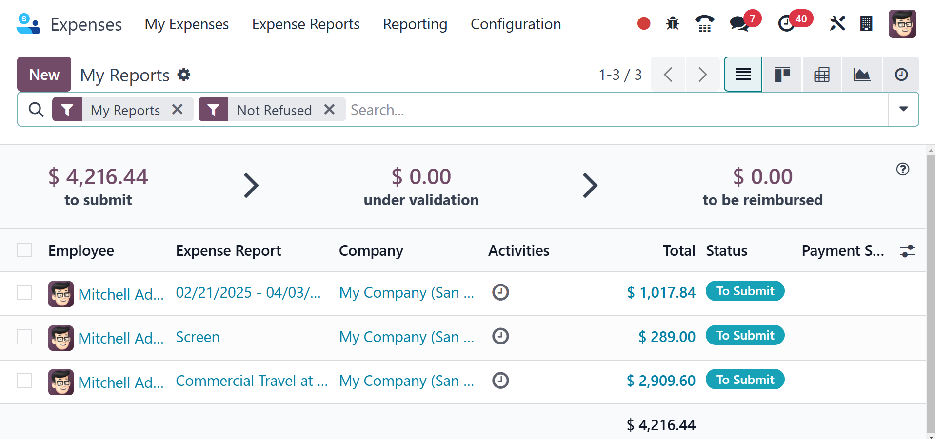 choose to classify the expenditure as Approved, Refused, Submitted,