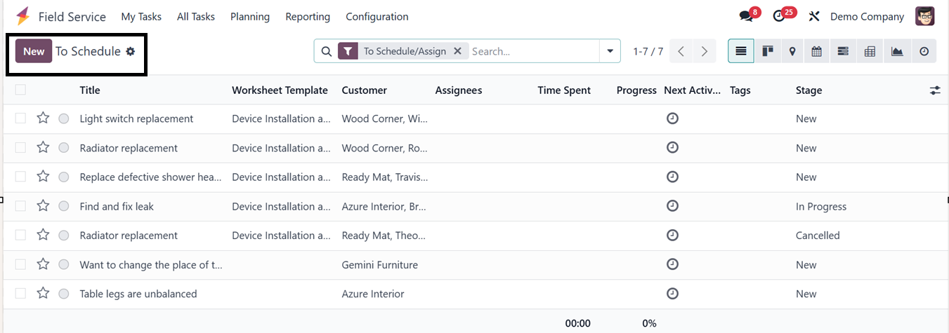 The “To Schedule” platform in Odoo Field Service allows users to see
