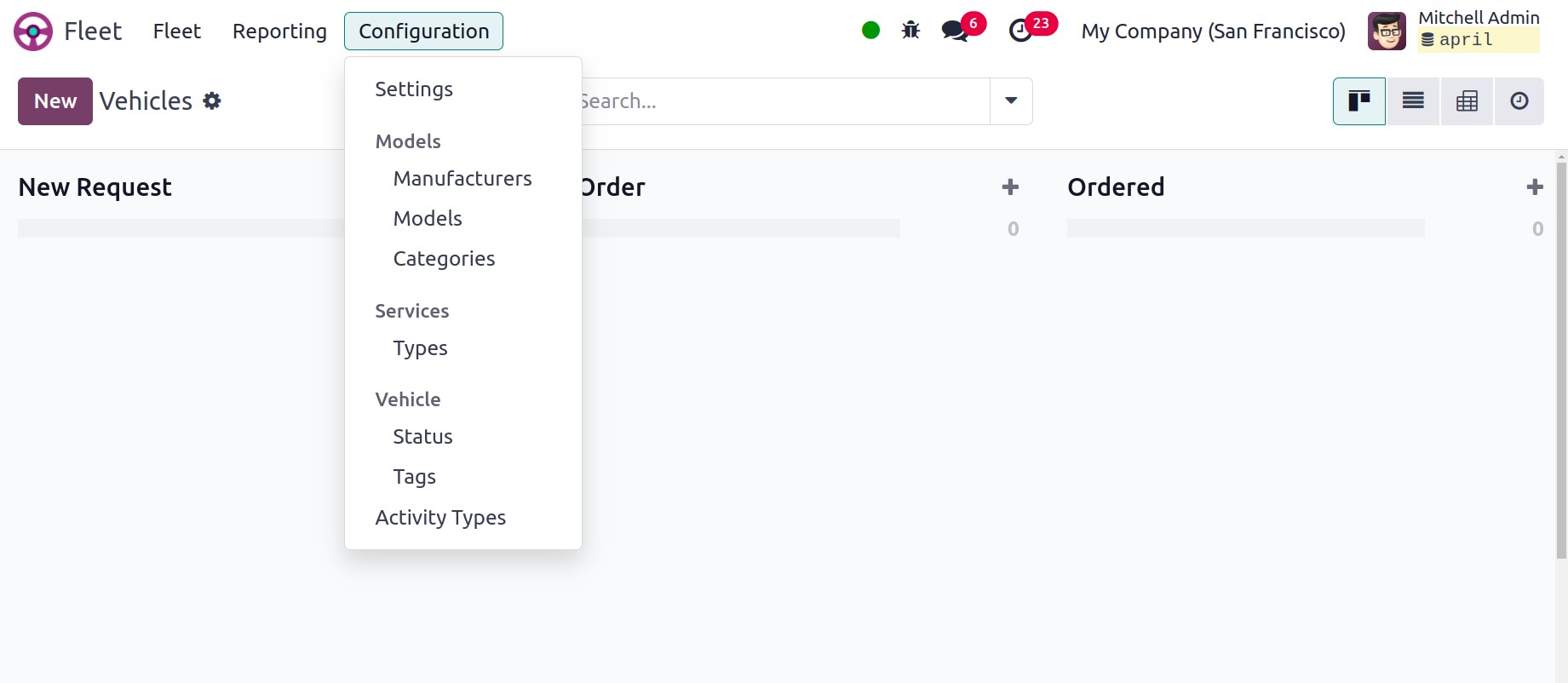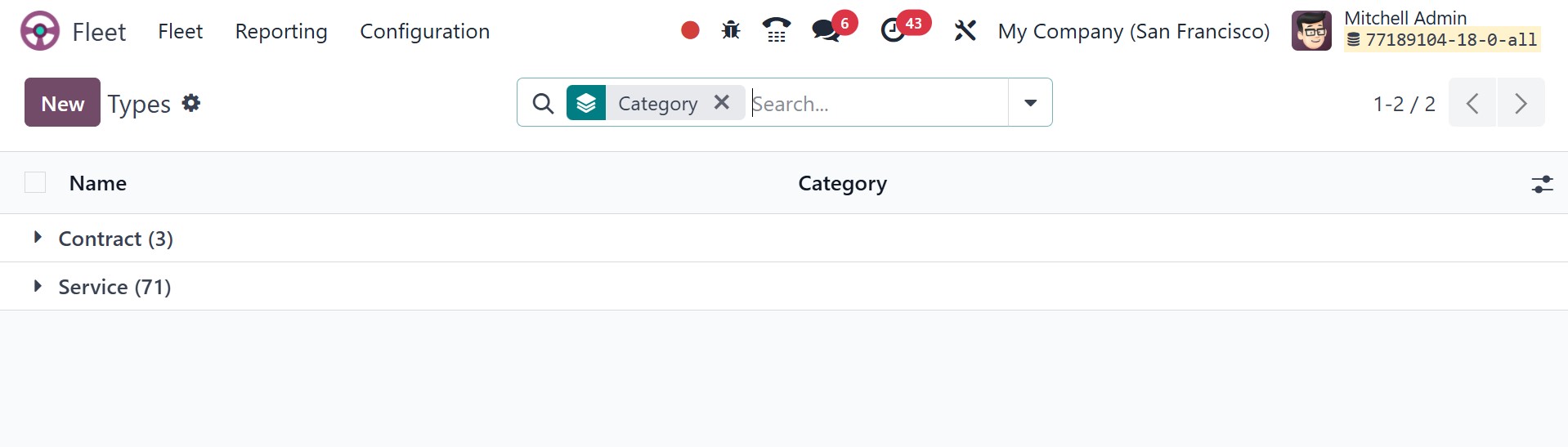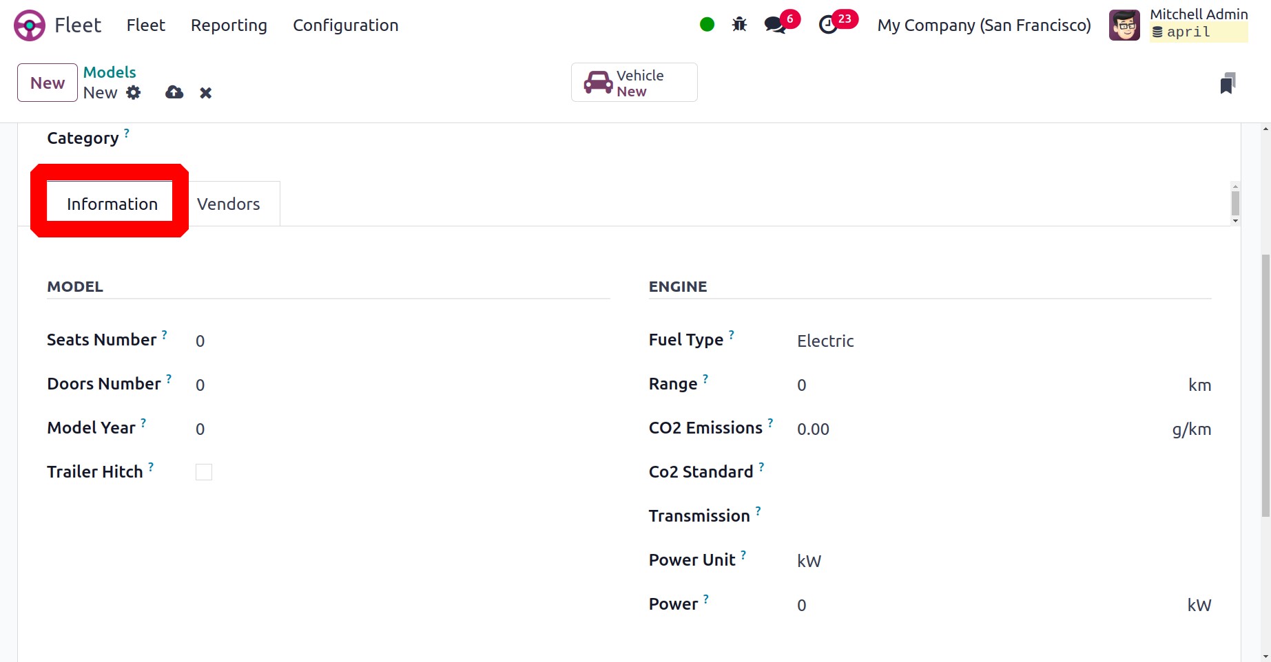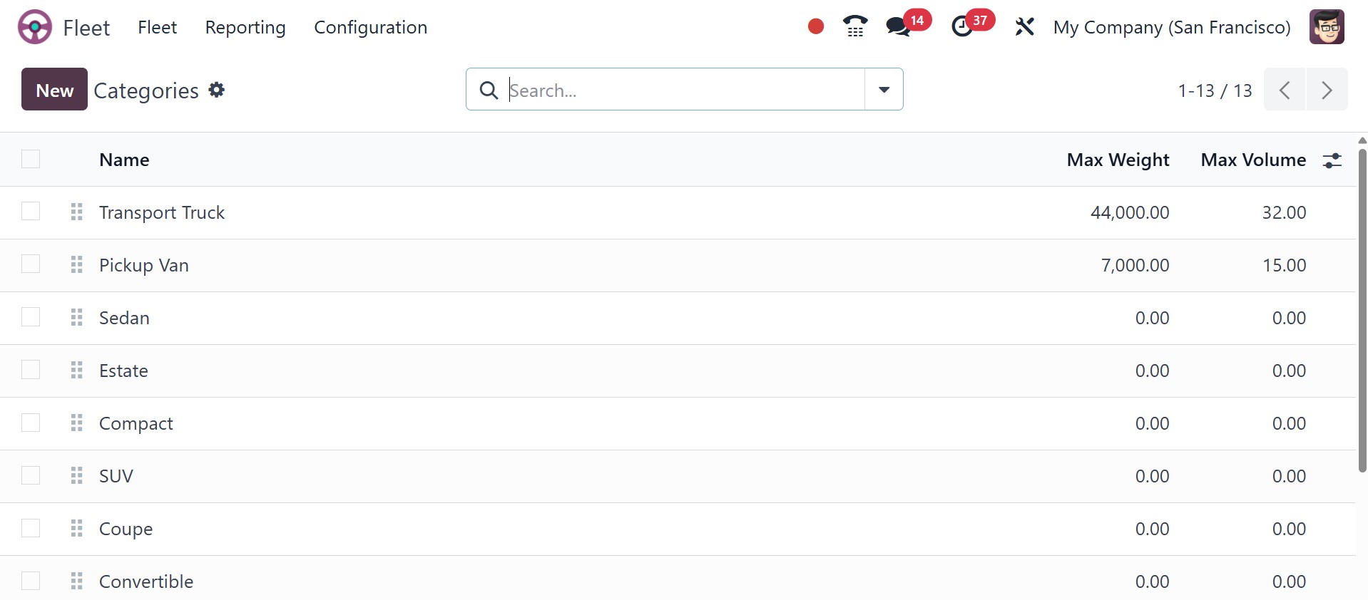 You can navigate to this window by selecting Fleet -> Configuration -> Model Category.