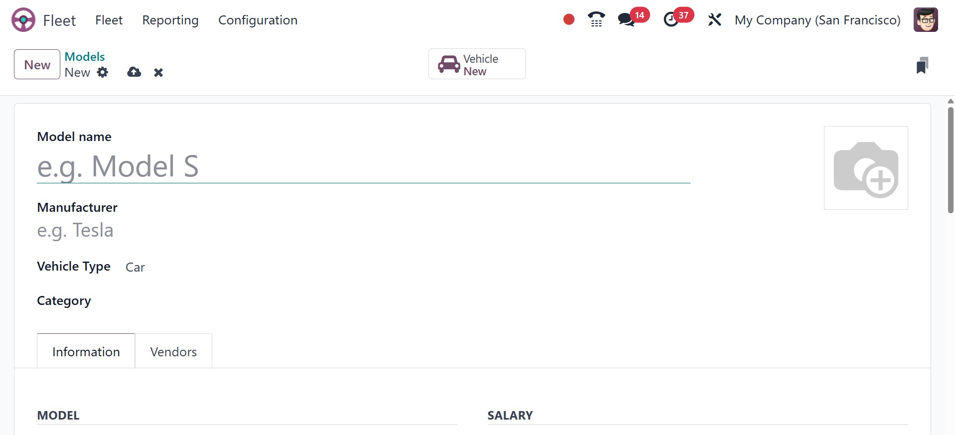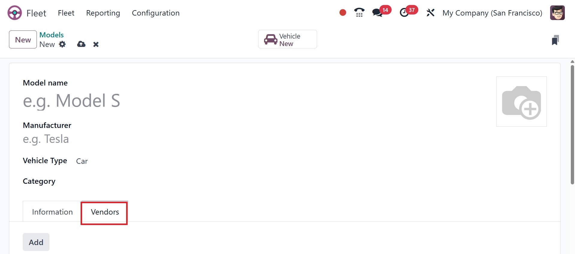 for each vehicle under the vehicle model. Click the NEW button to start creating