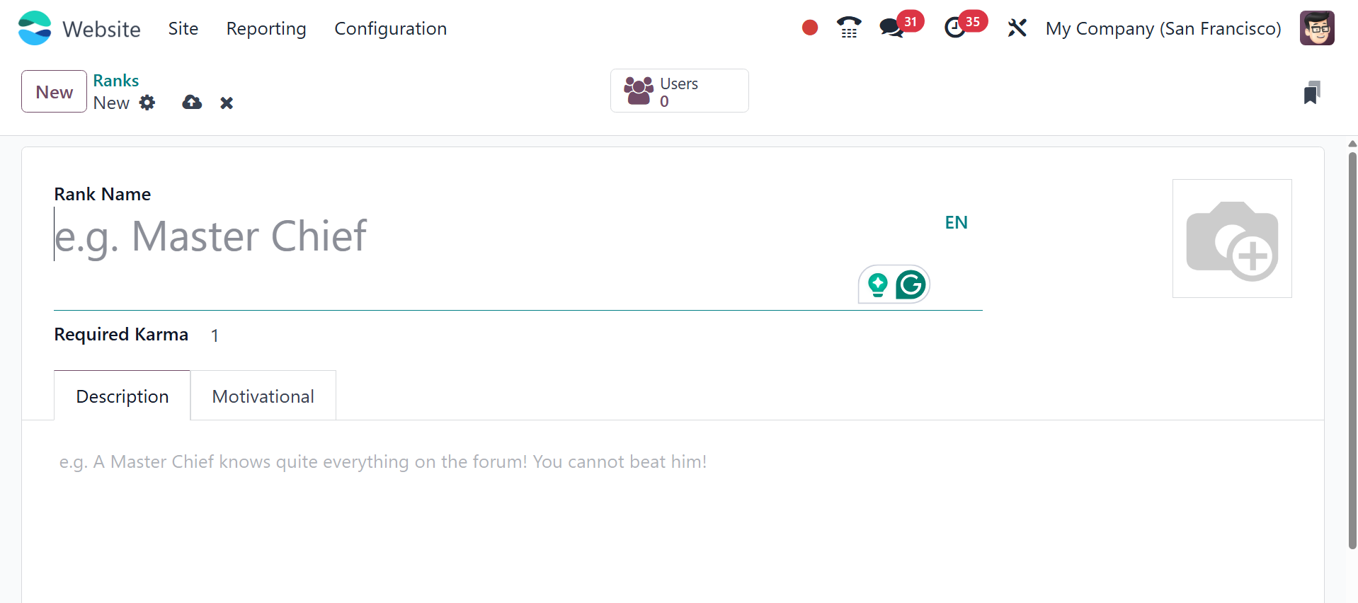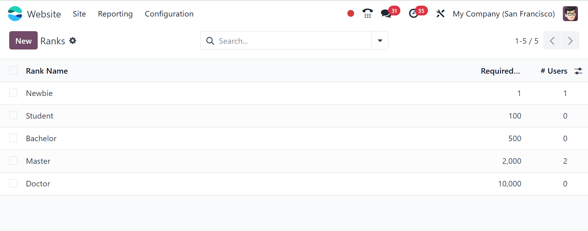 points earned. To set up a new rank, click the New button.