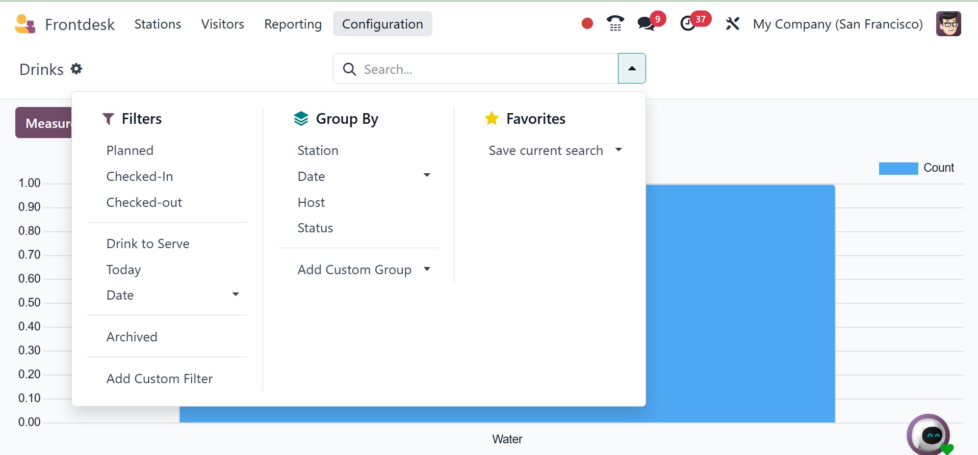 In the filters, you have the planned, checked in, checked out, drink to serve, today,