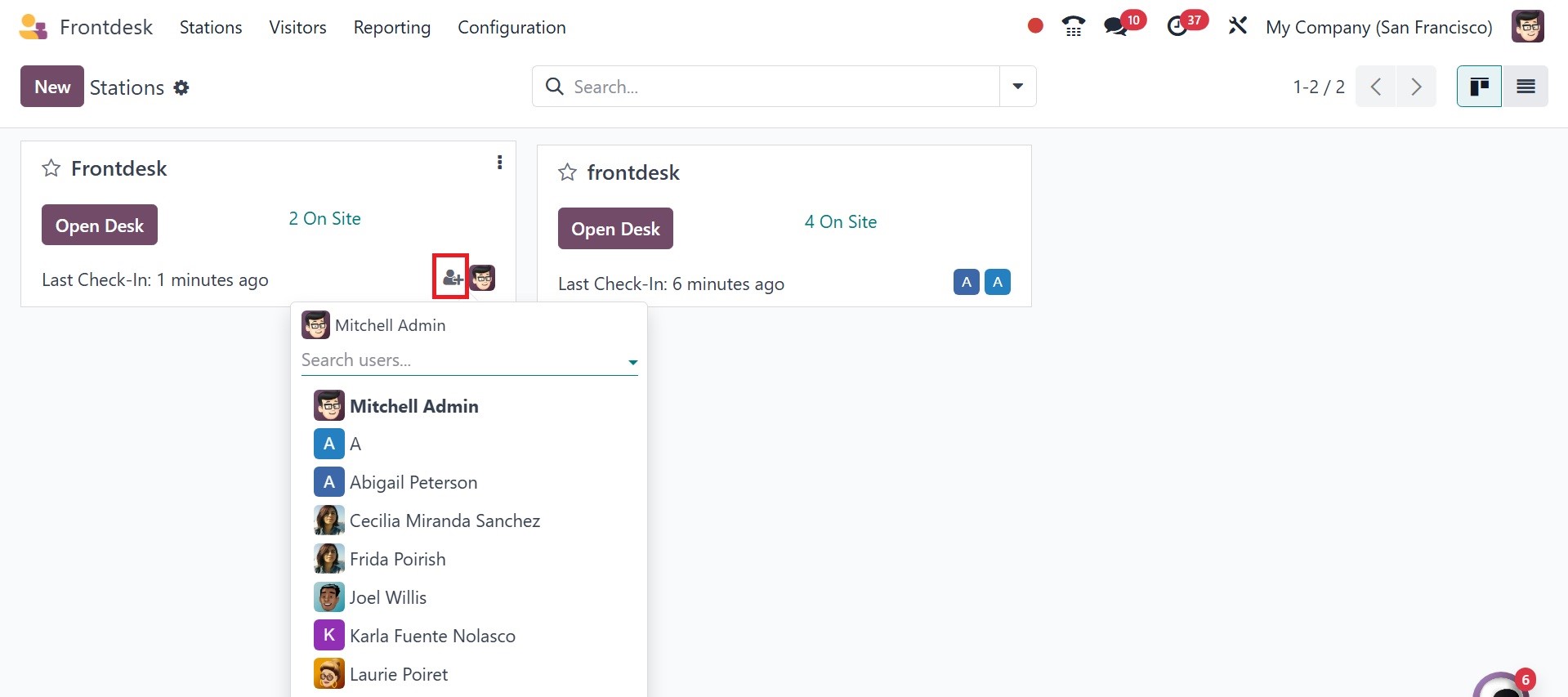 First, provide the name of the front desk. The users with responsibilities are the
