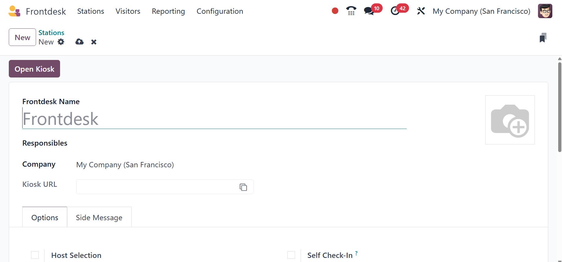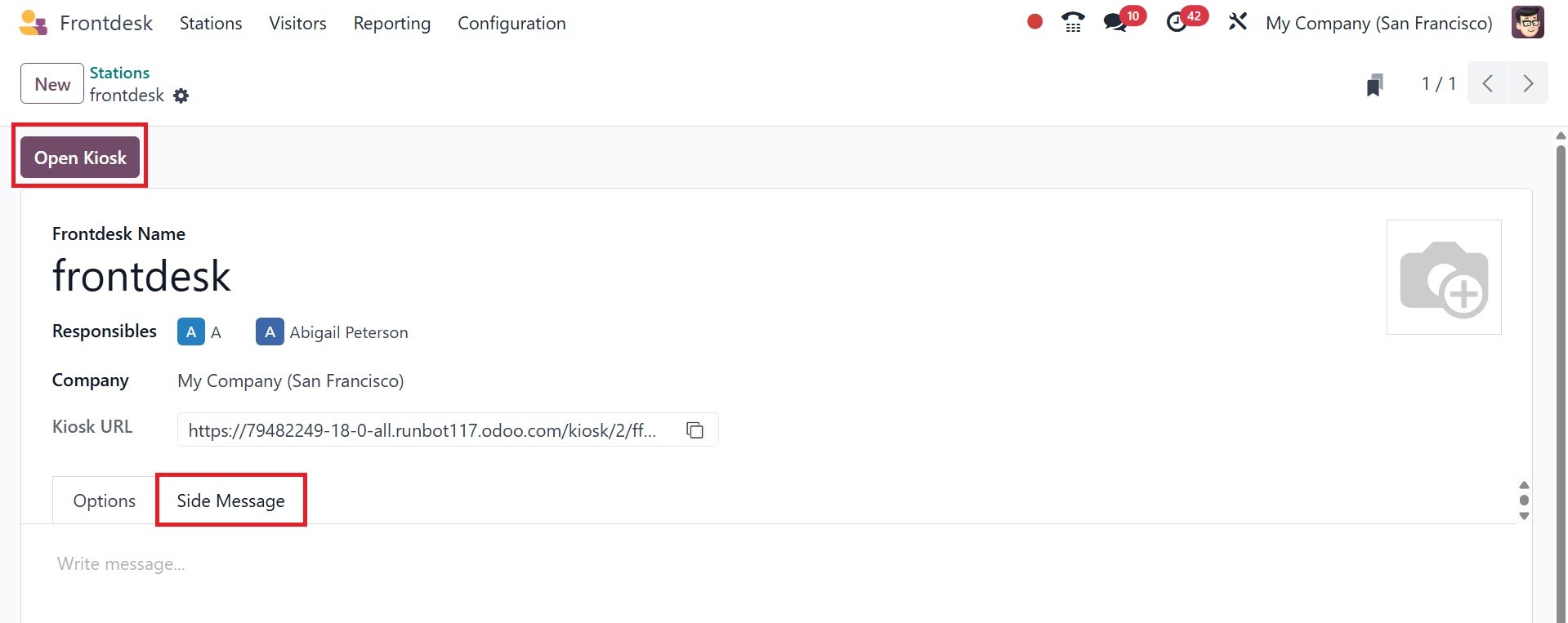 The Kiosk URL is then also displayed in the form view. Then, the Options menu facilitates
