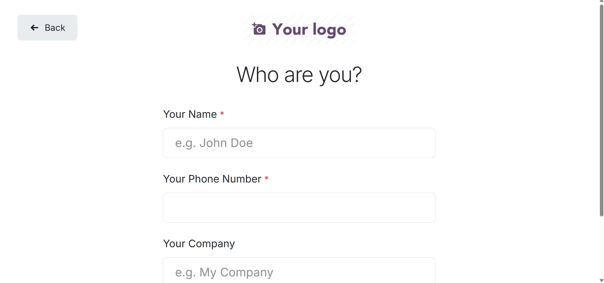 Visitors are asked to enter their personal details, such as name, phone number,