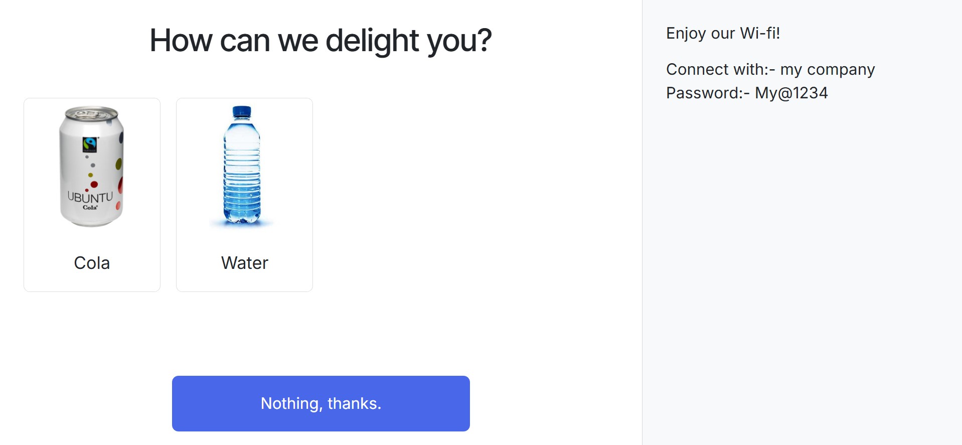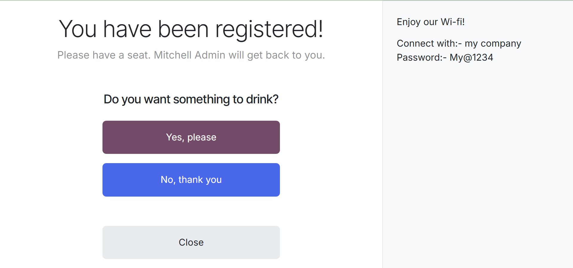 screen for mobile device check-in. Offer Drinks enables you to serve snacks or beverages