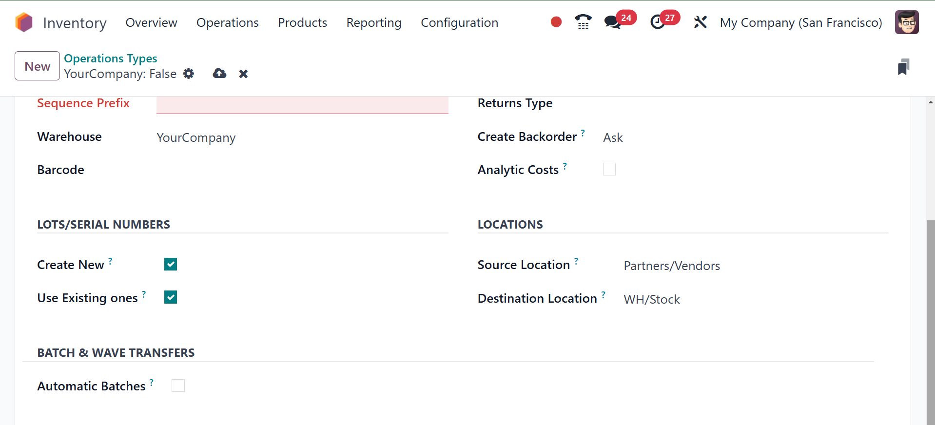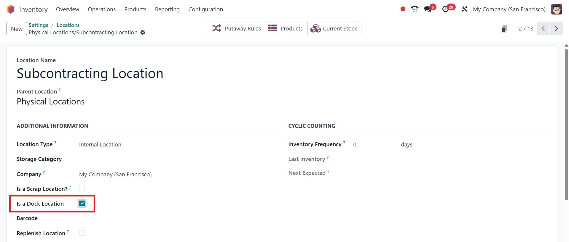 In the Odoo Inventory module, you