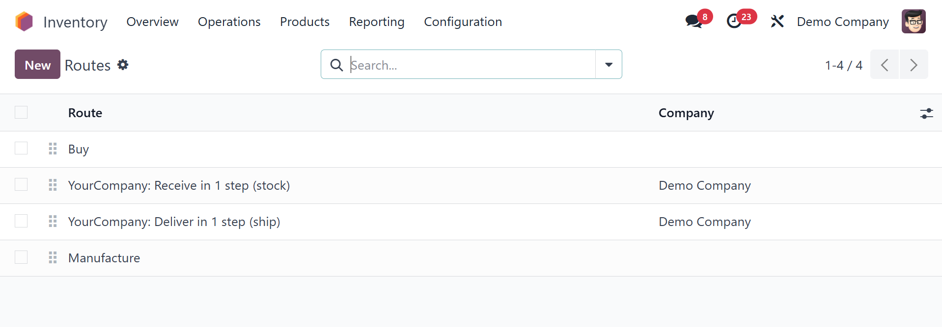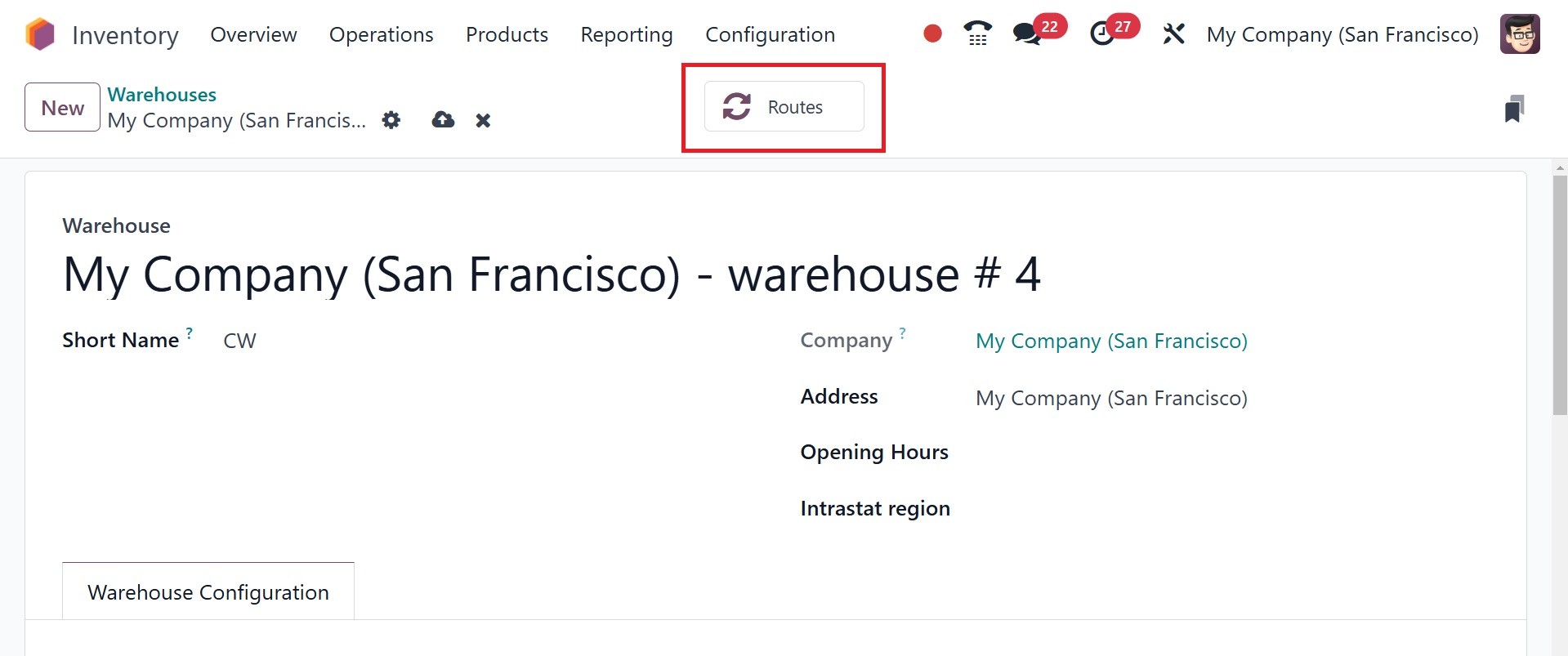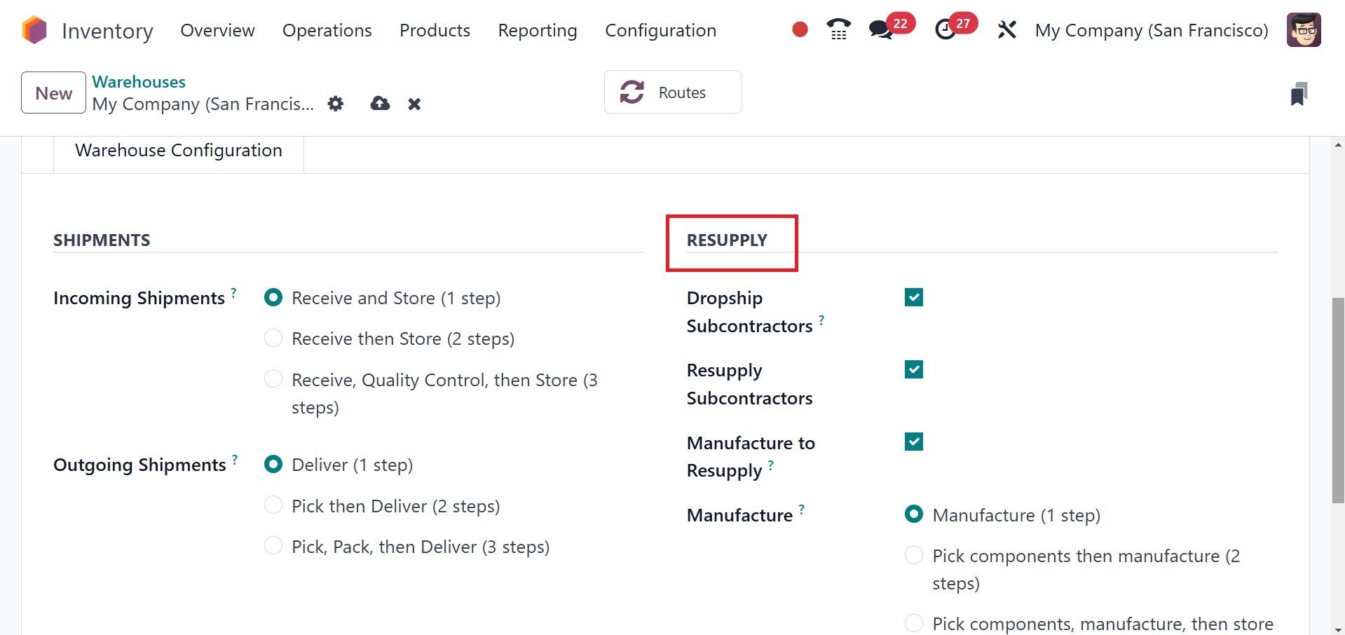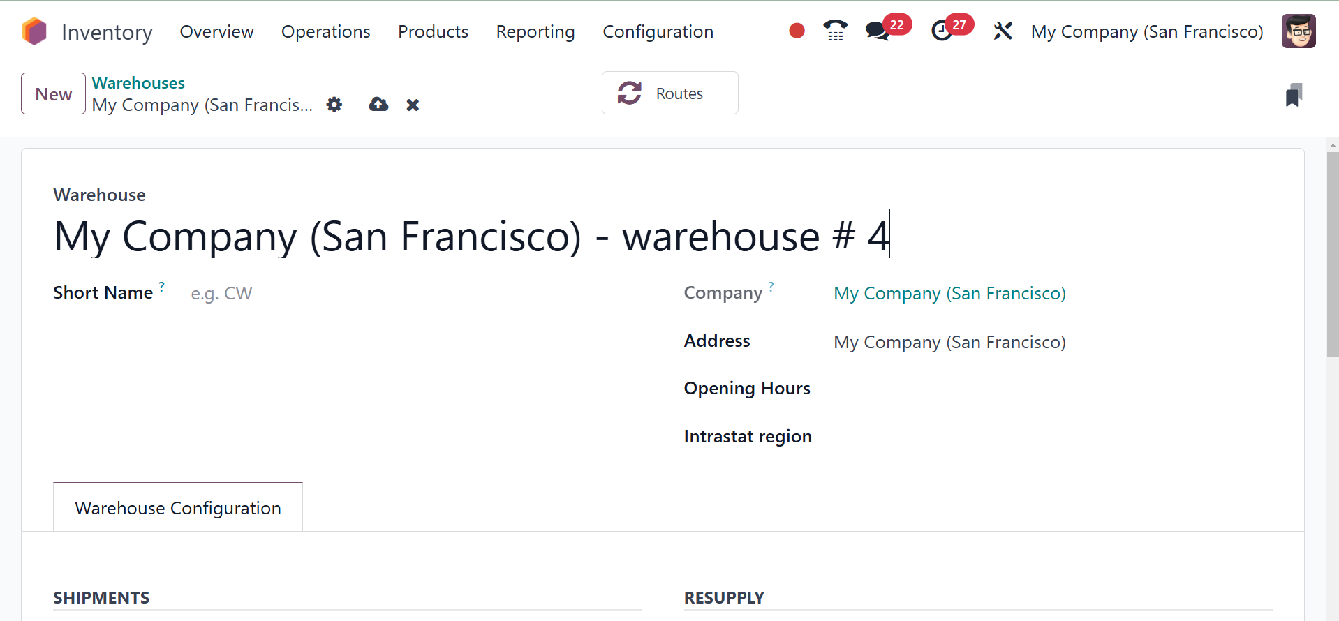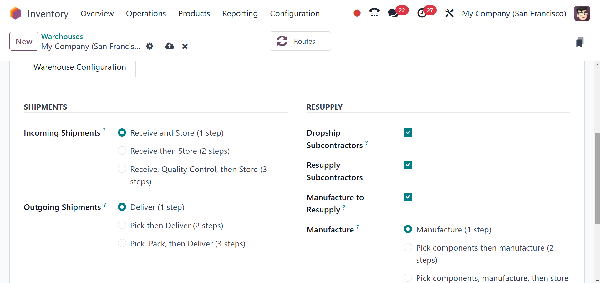 Odoo Inventory module.