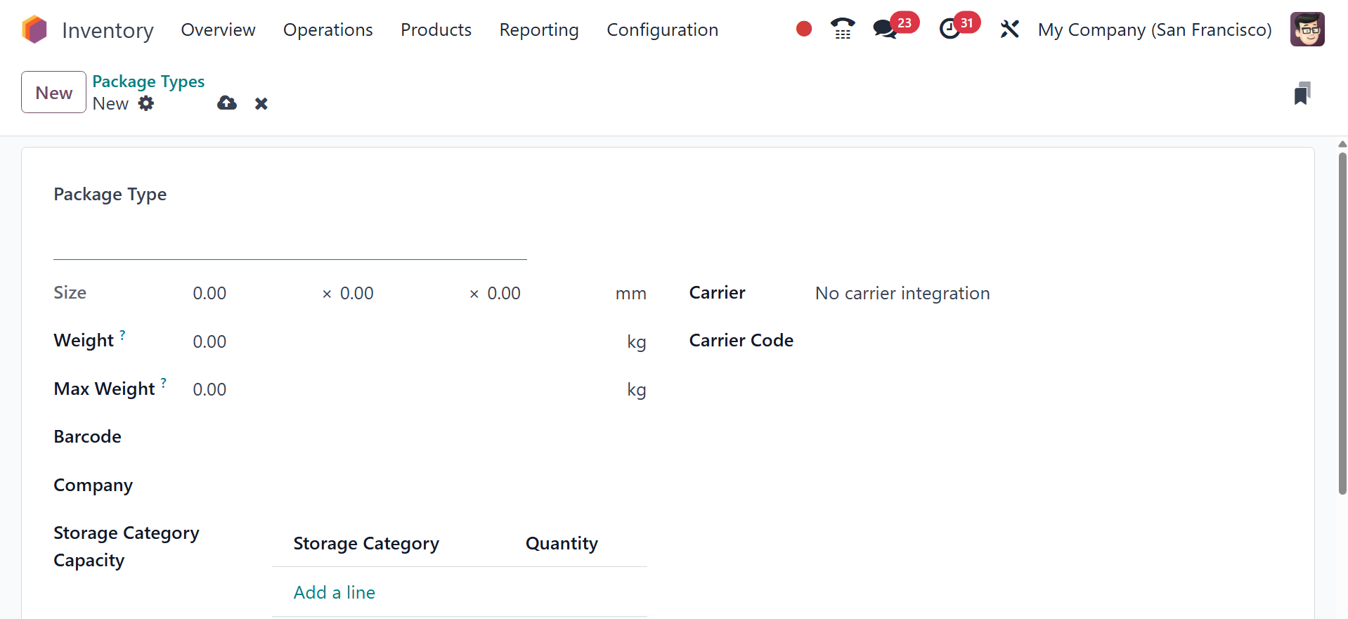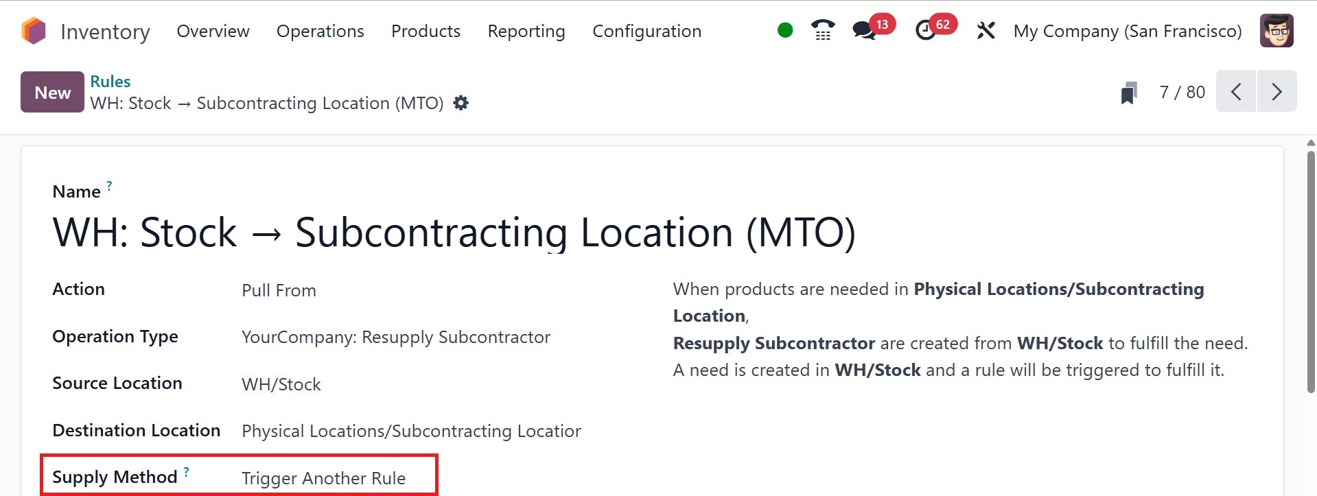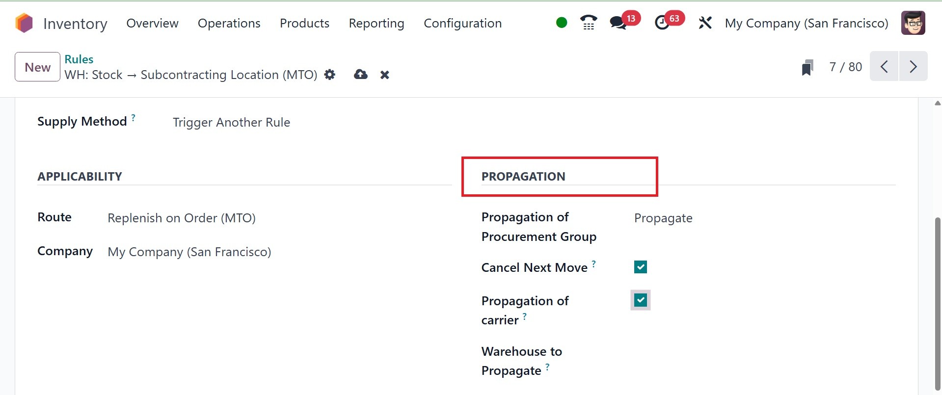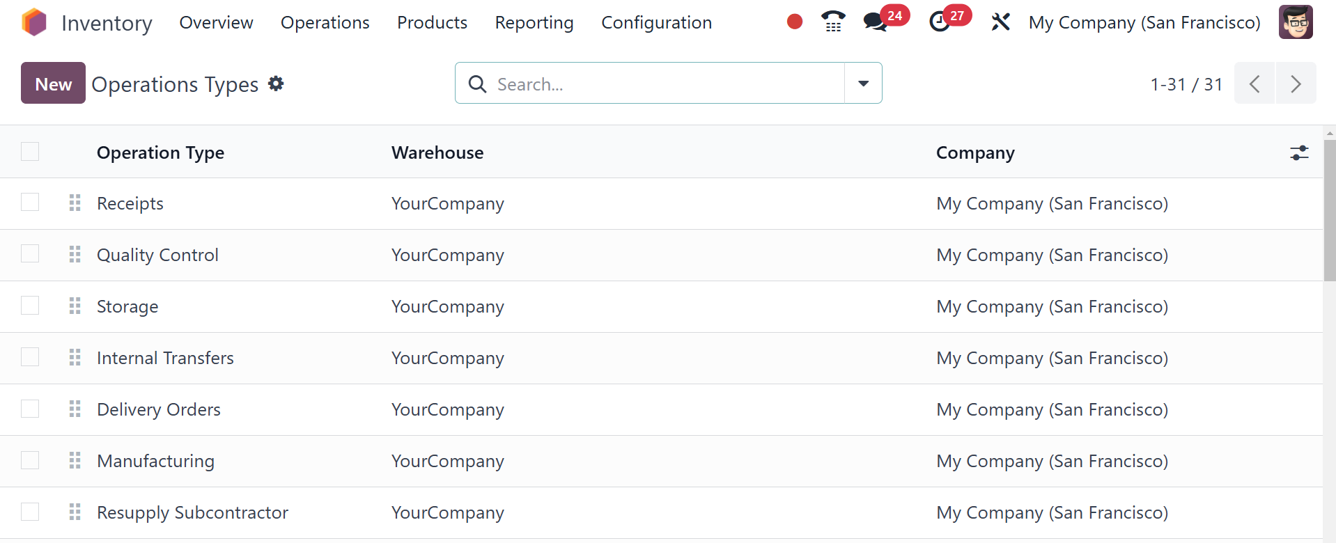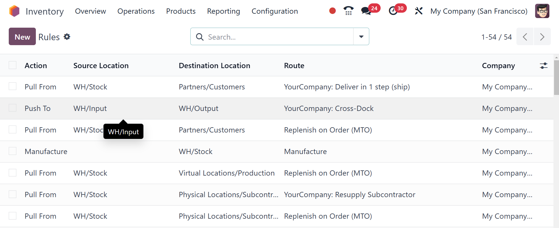 Odoo Inventory module.