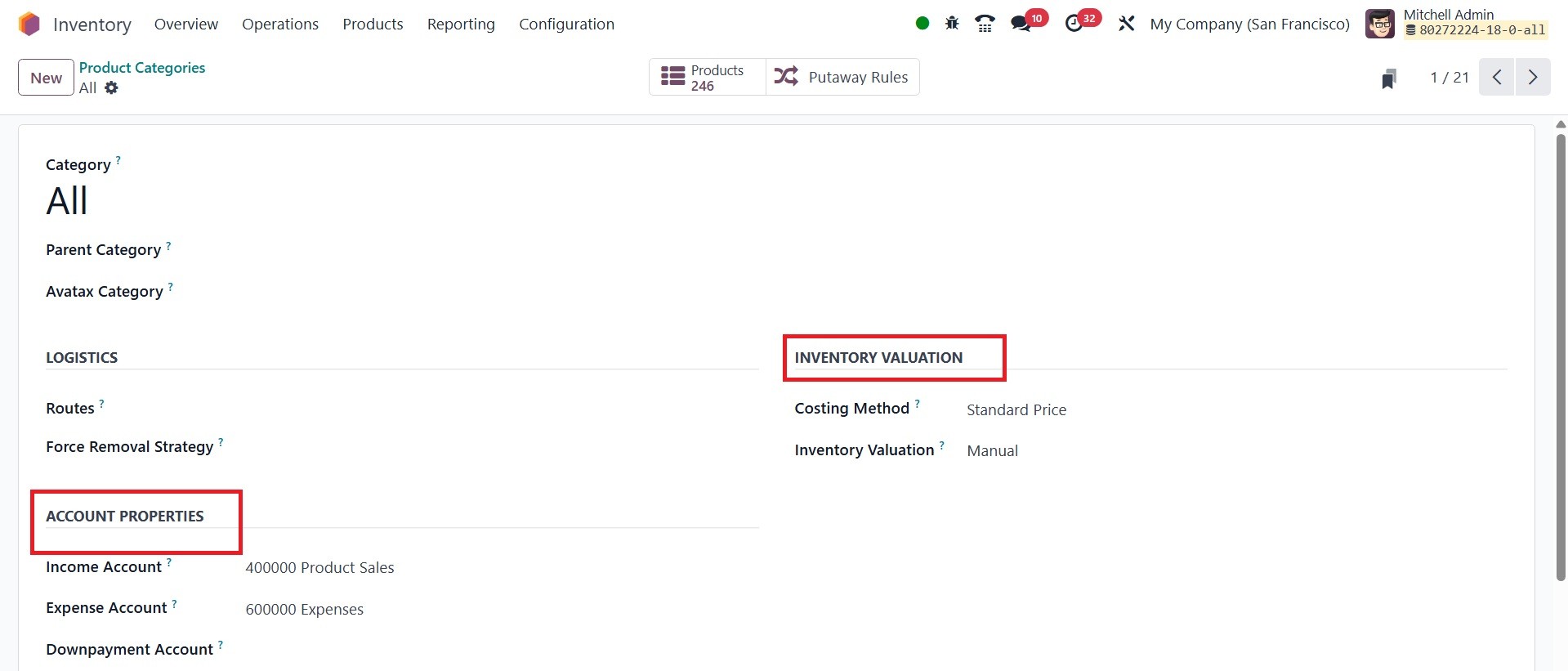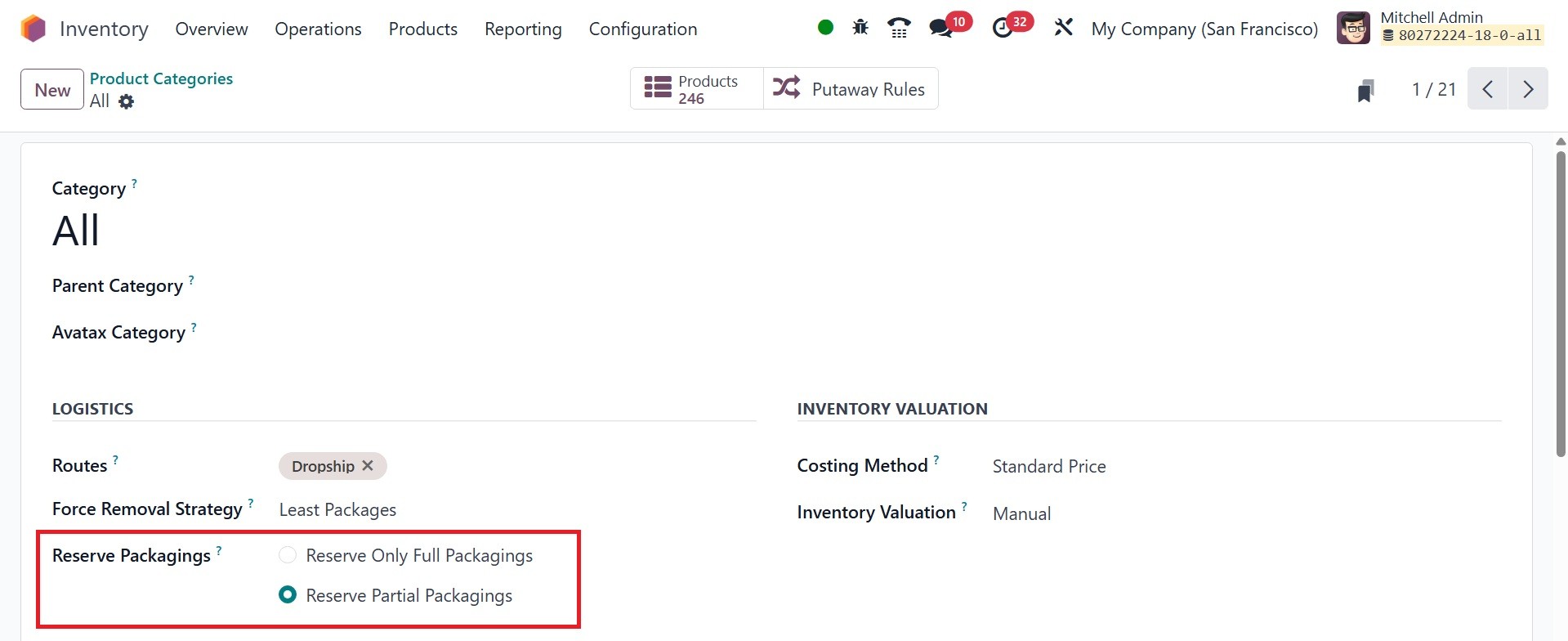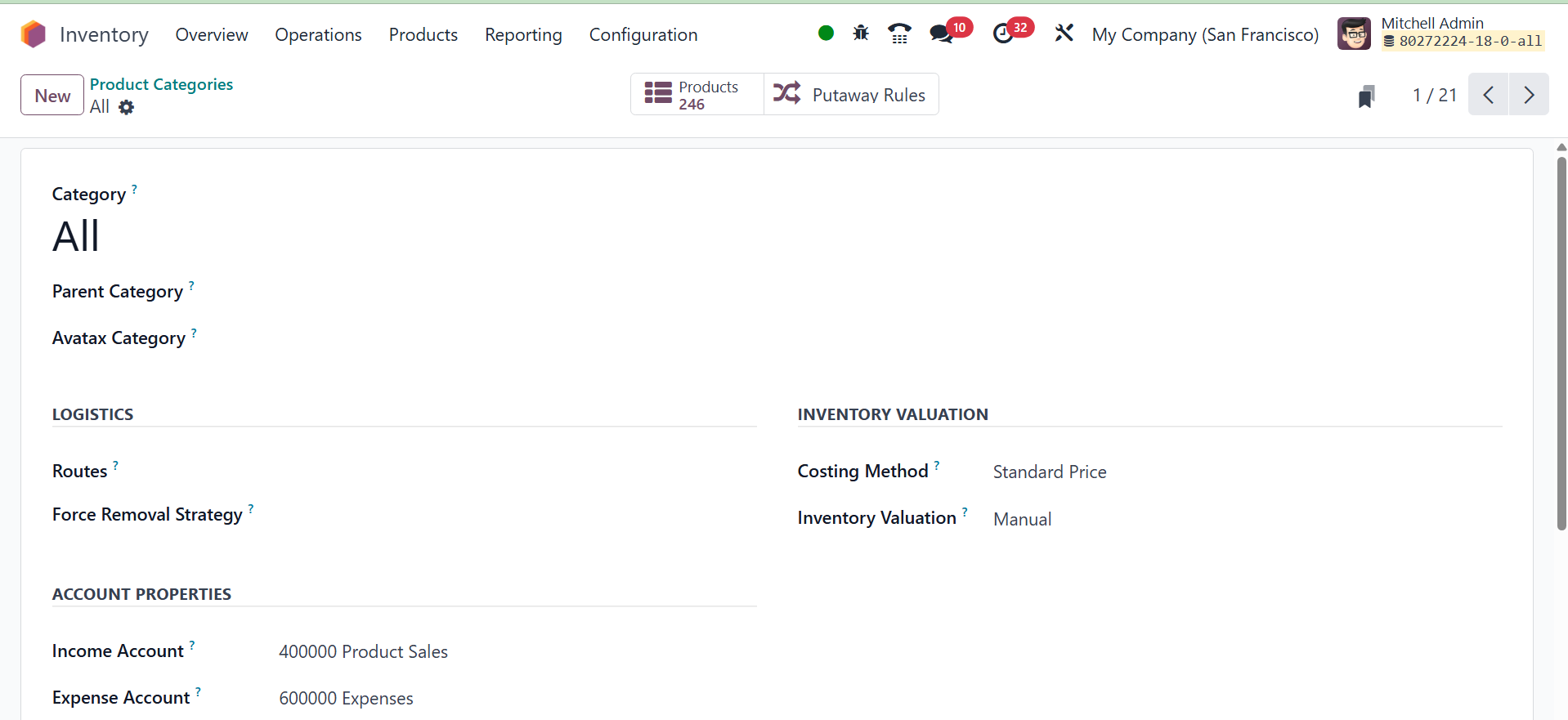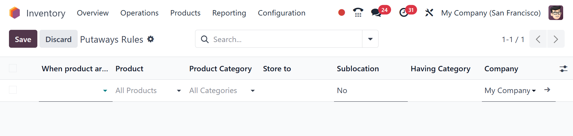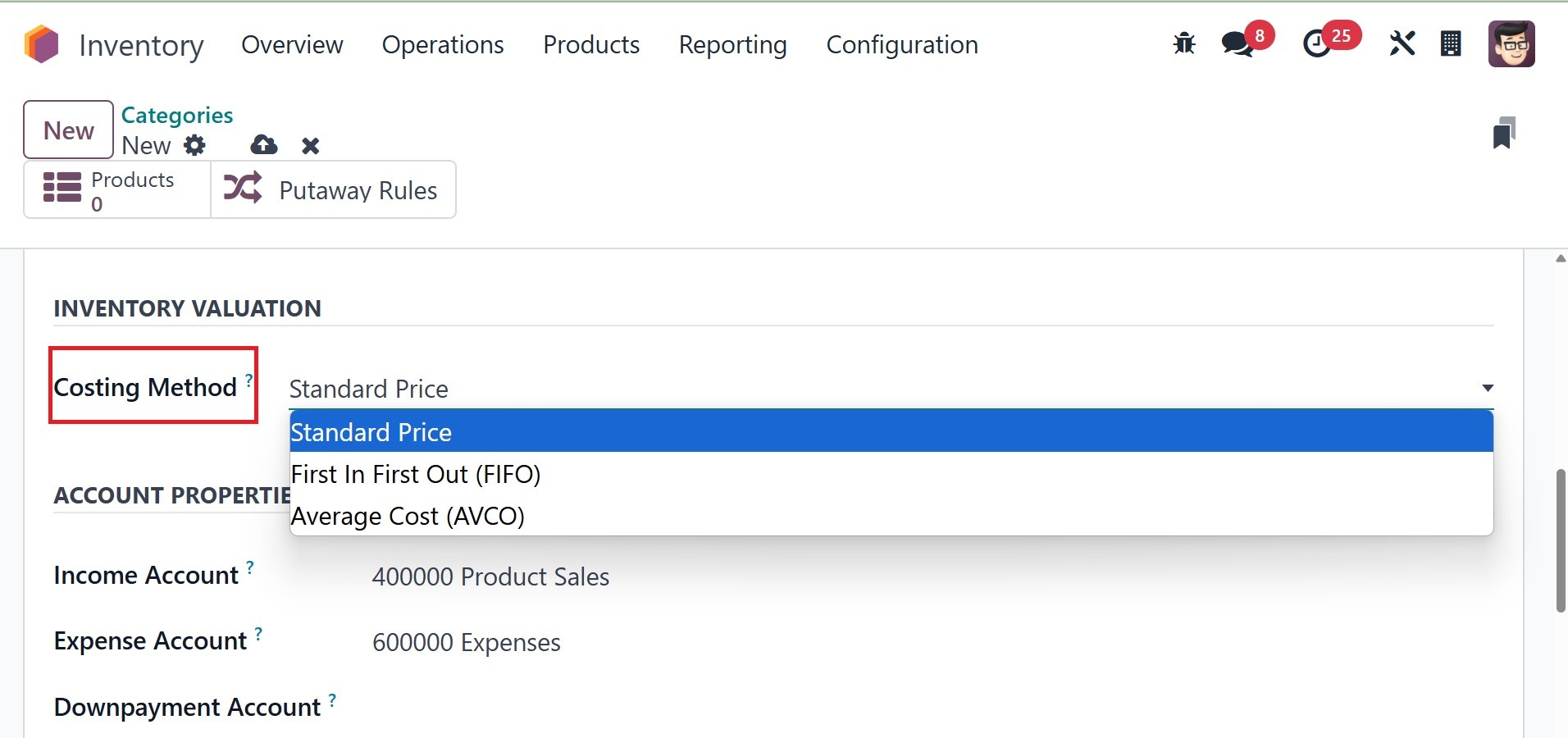 Categories and Putaway Rules
