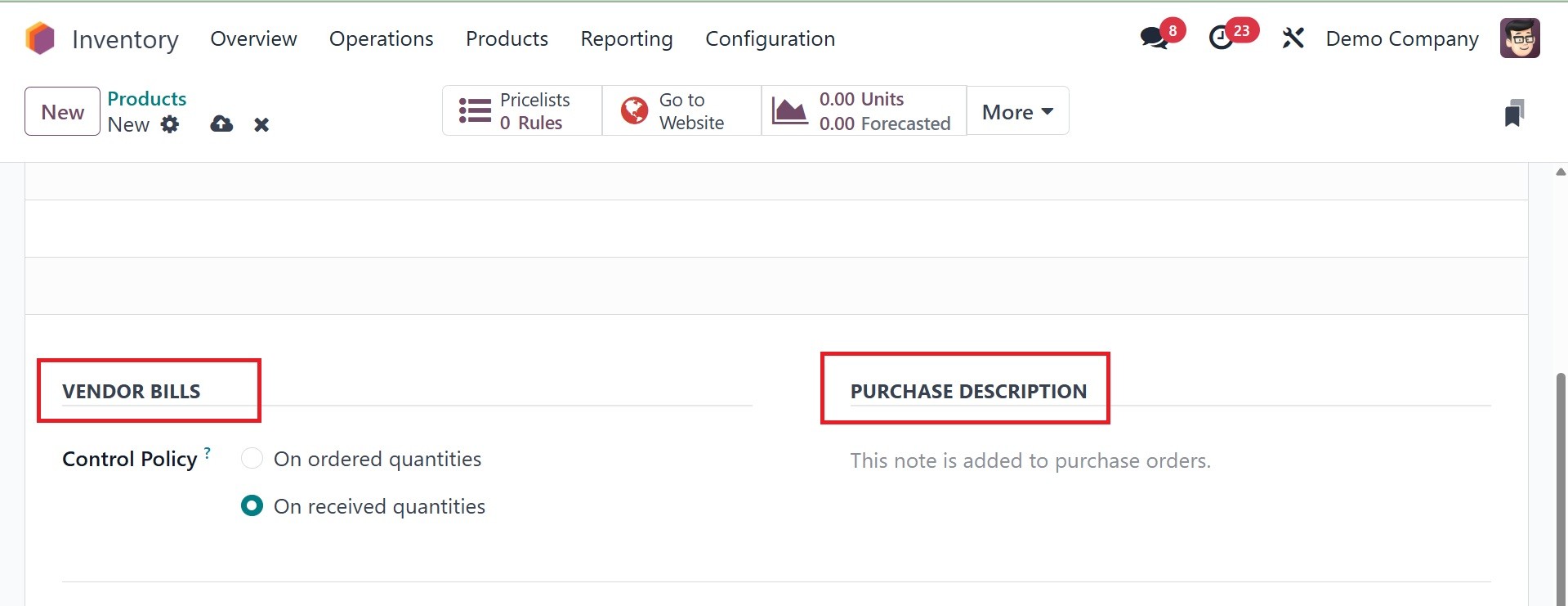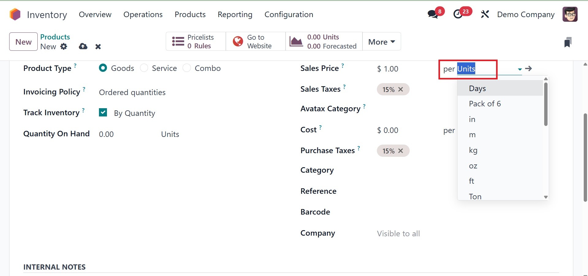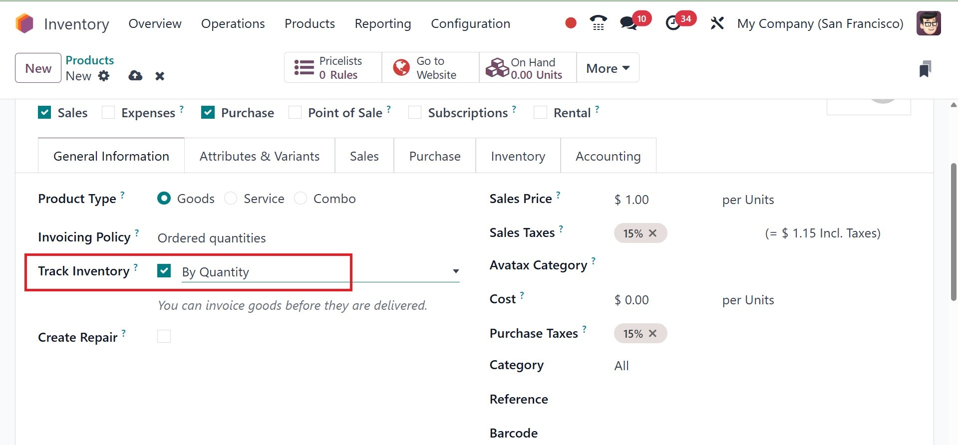 Inventory module, you may add