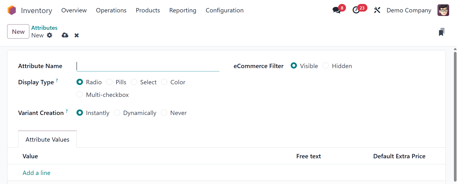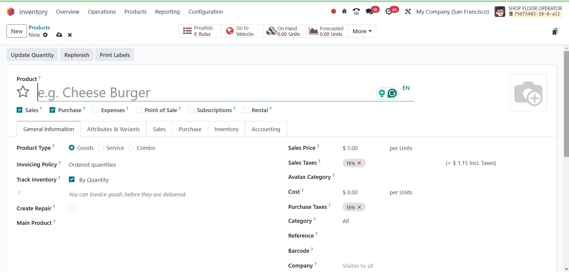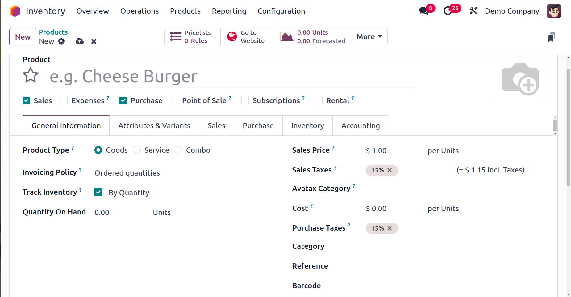 Inventory module, you may add