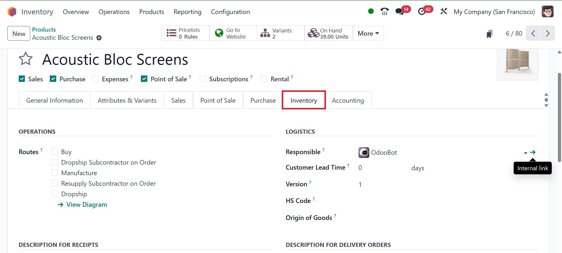 option within the Inventory