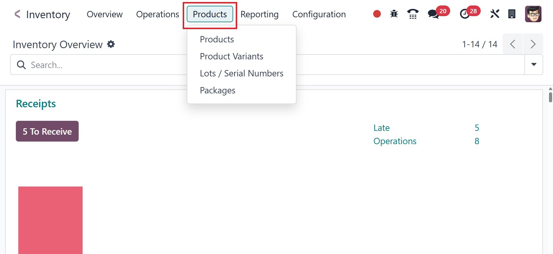 module's Products menu, as