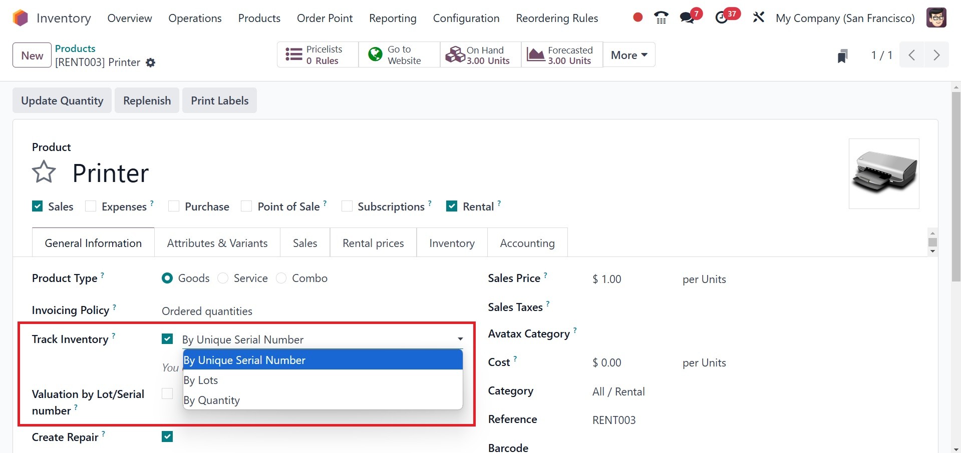 and Lots/Serial Numbers.