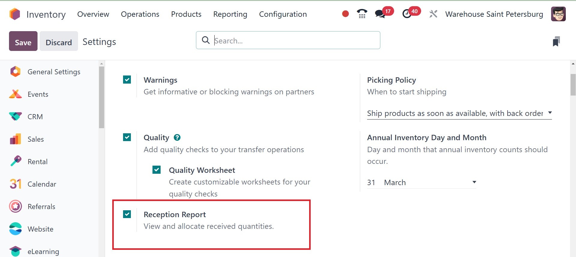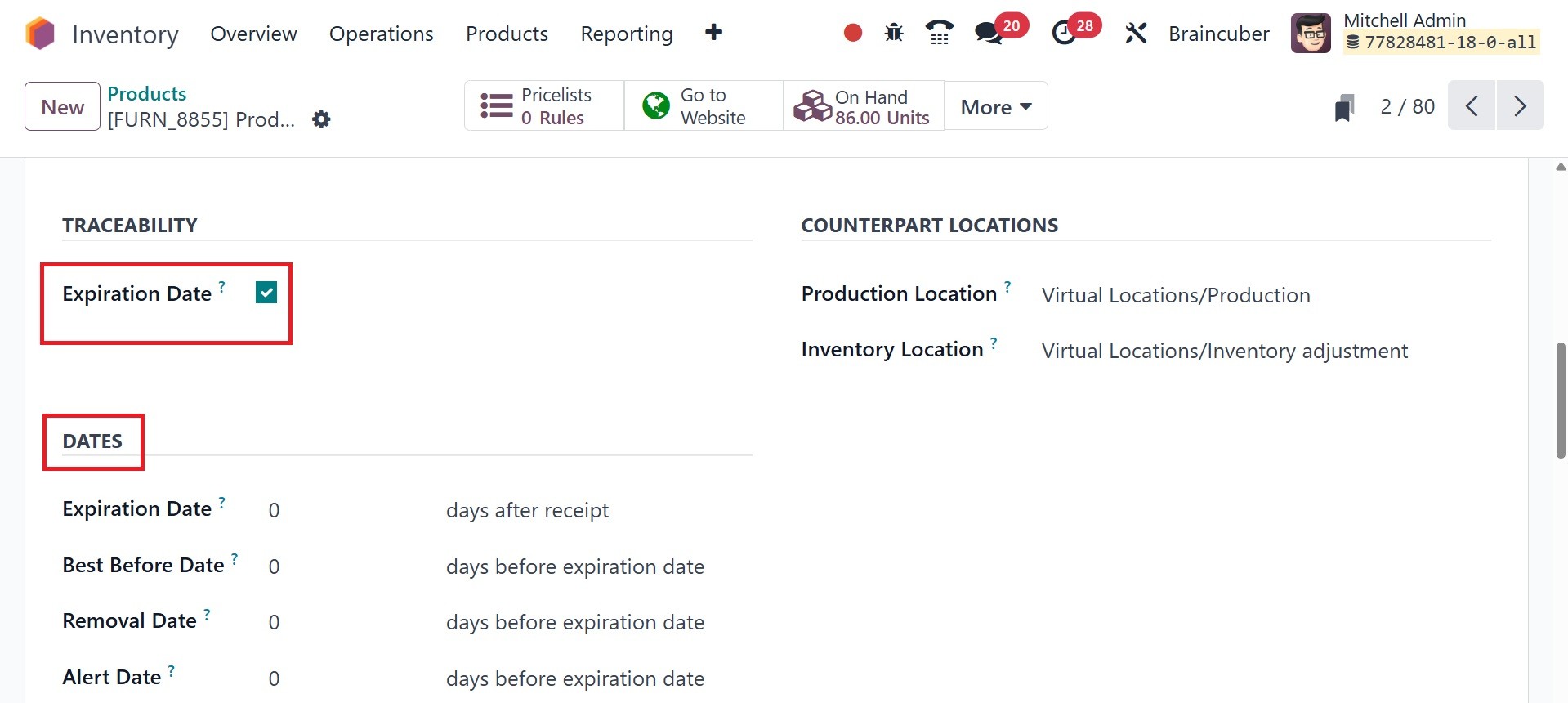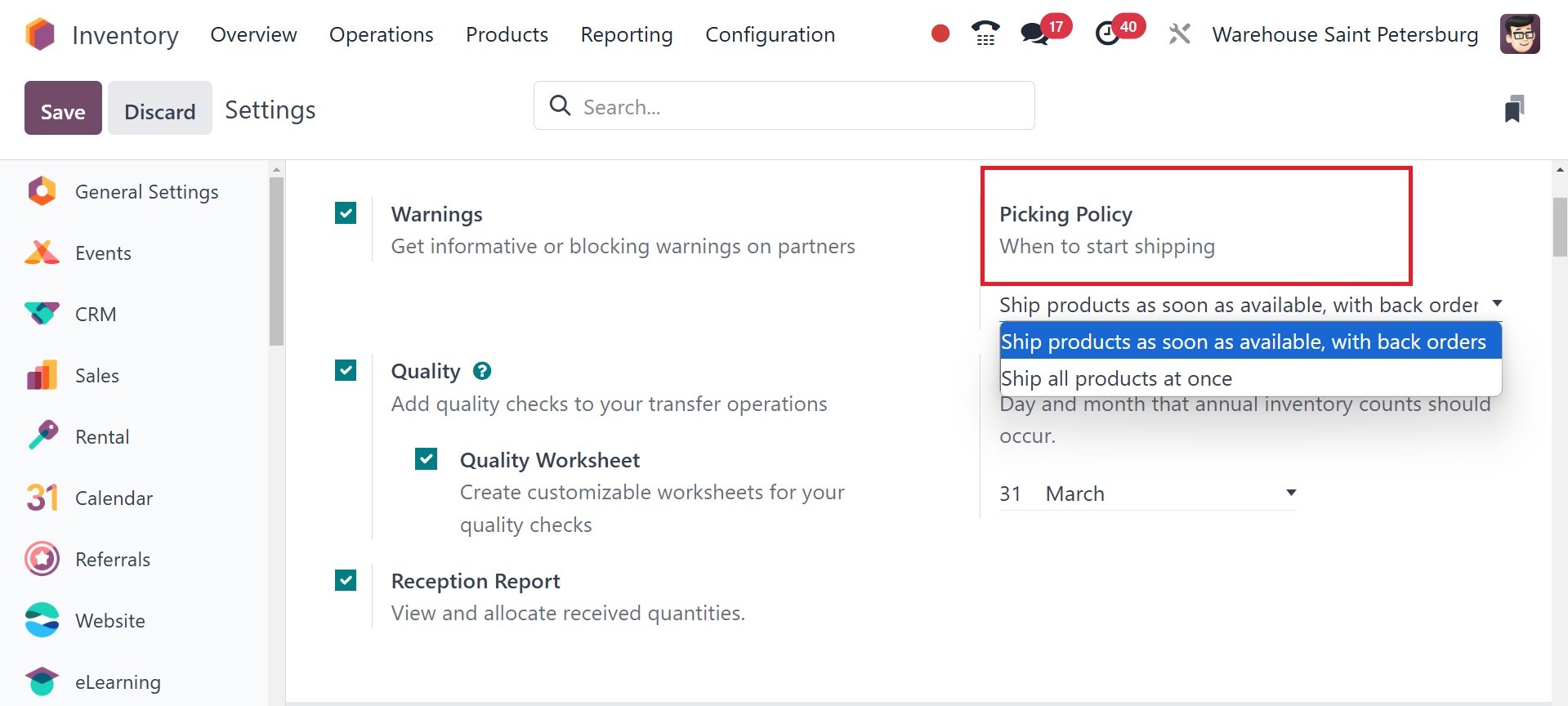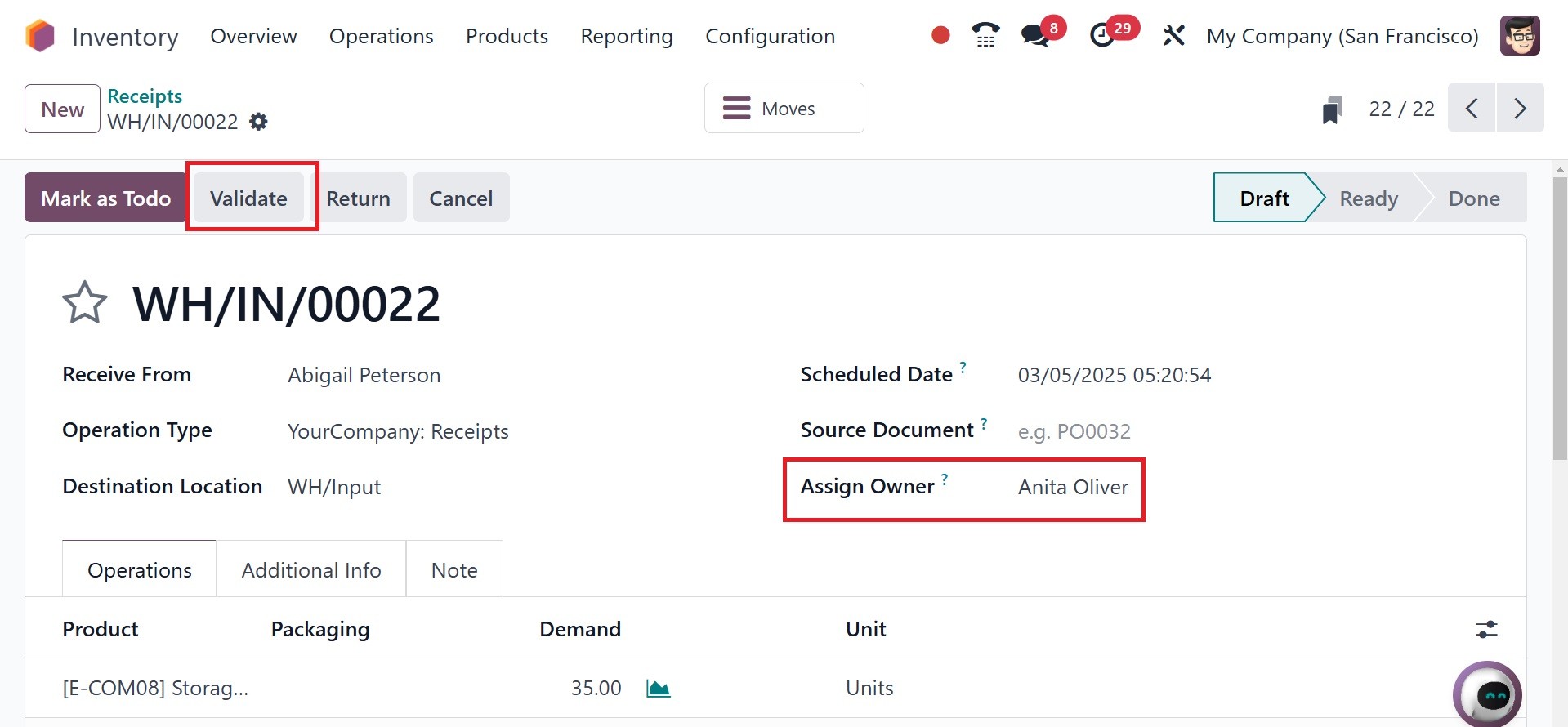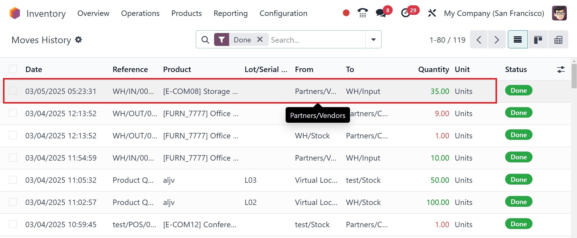 Odoo 18 Inventory module.