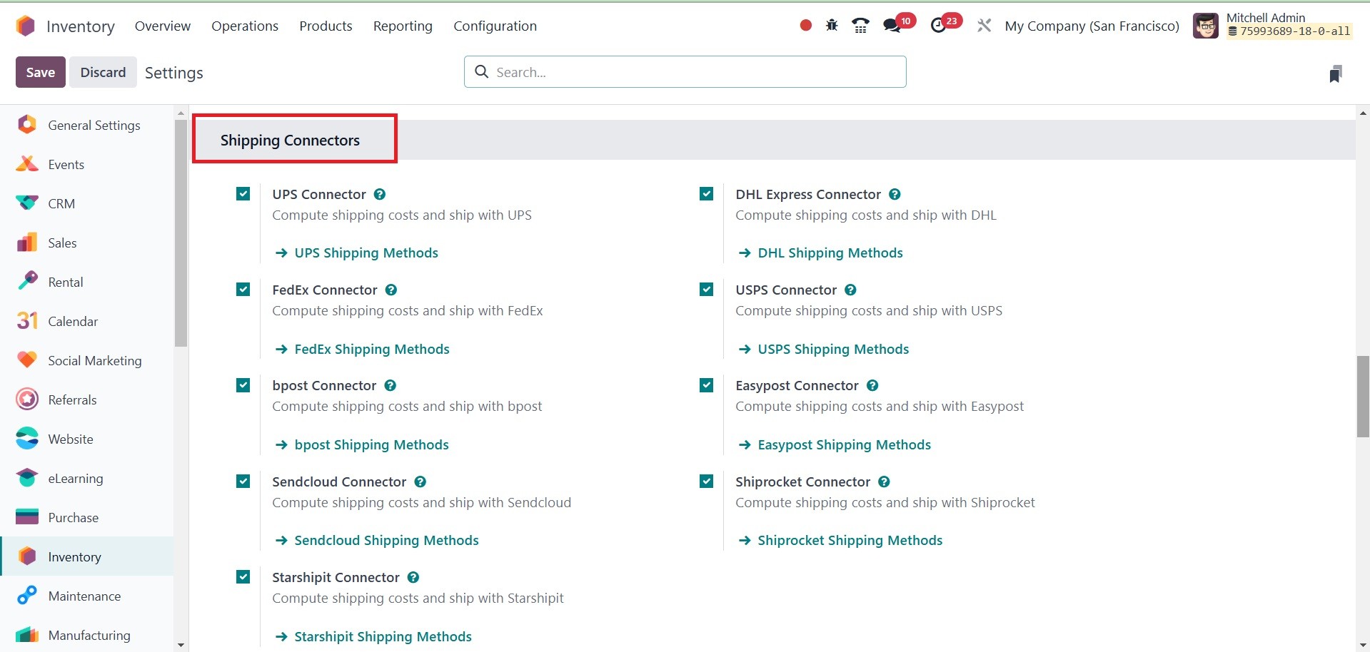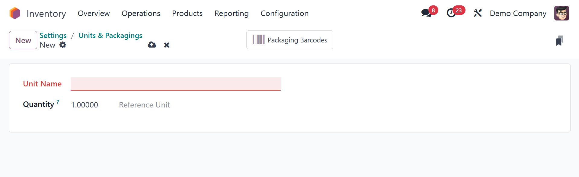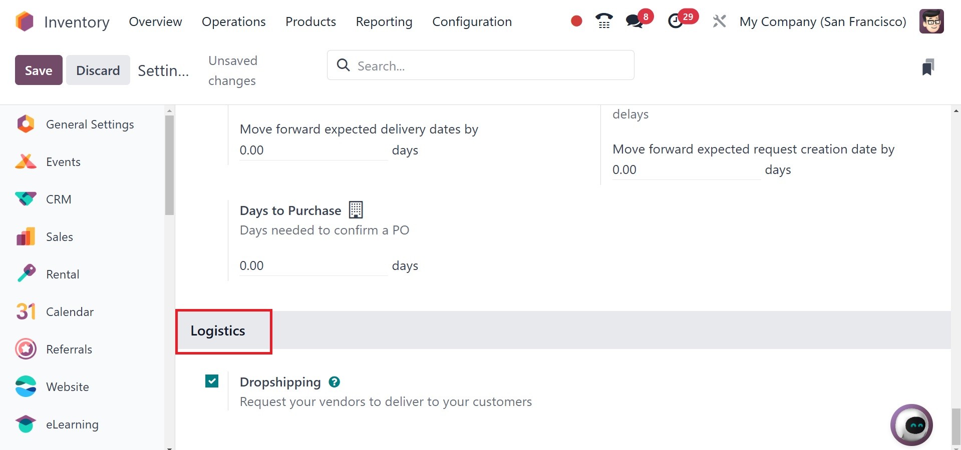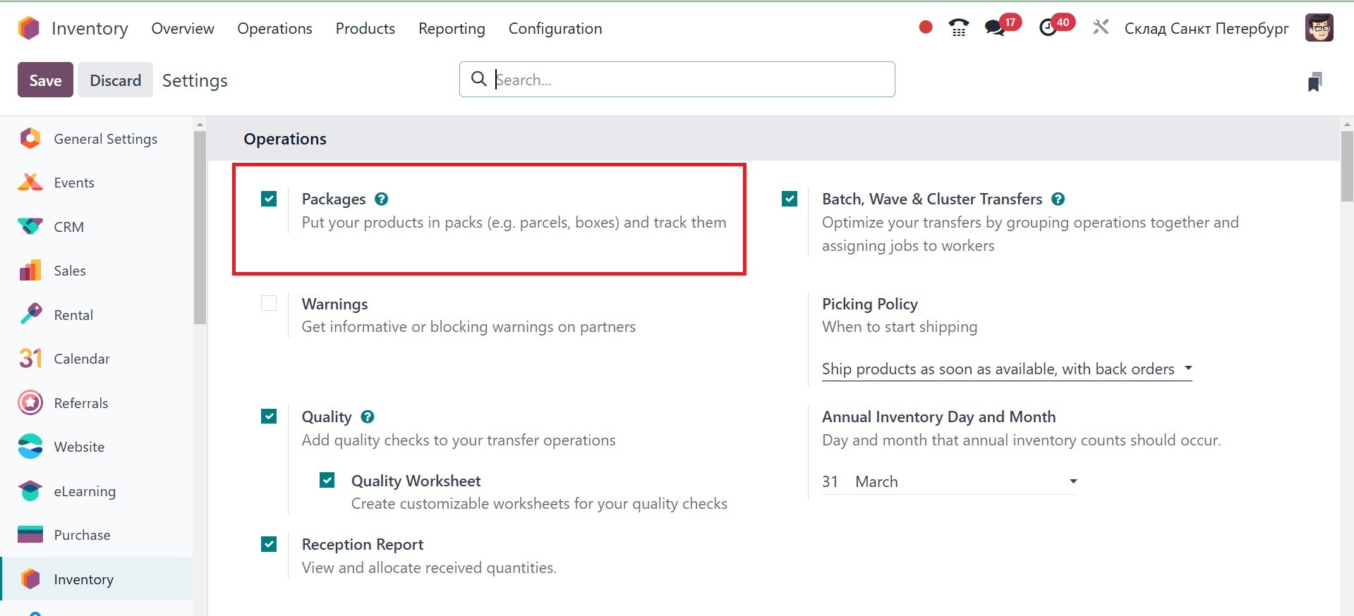 Odoo 18 Inventory module.