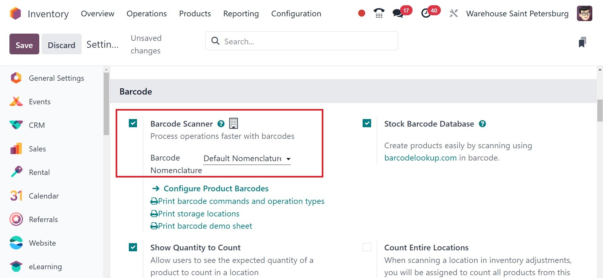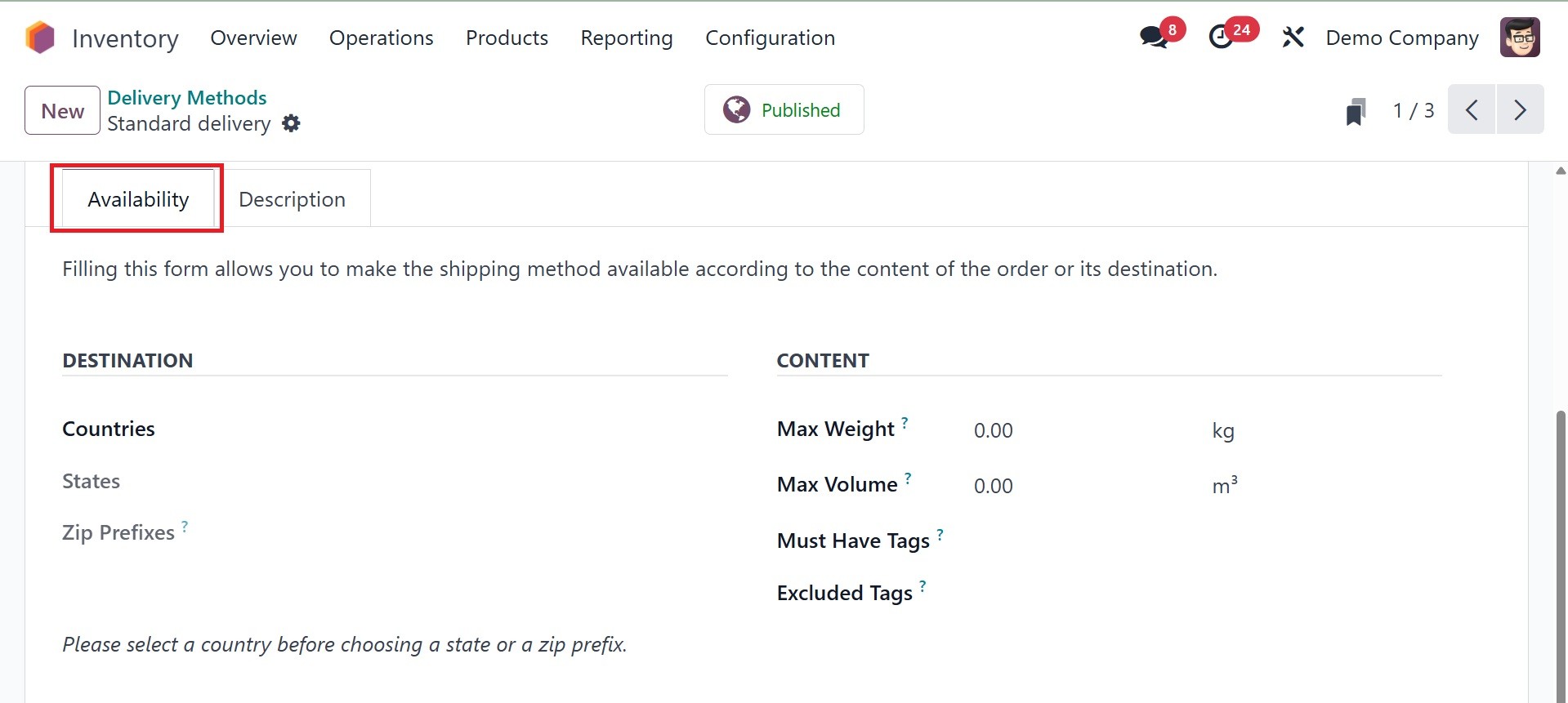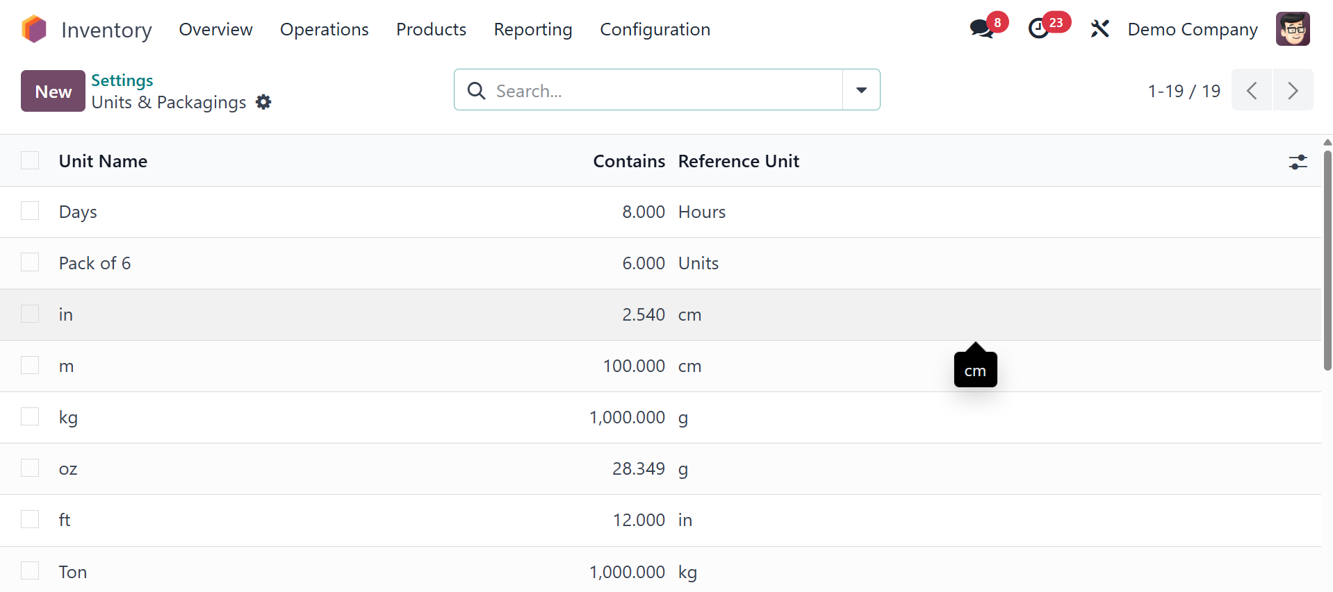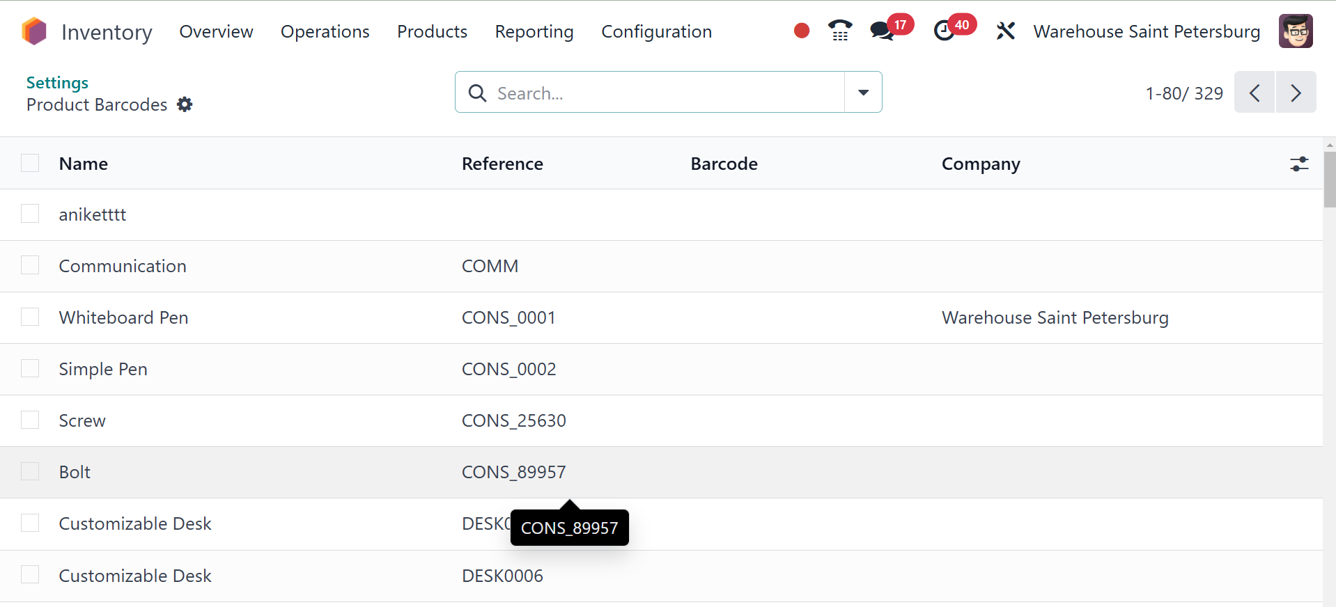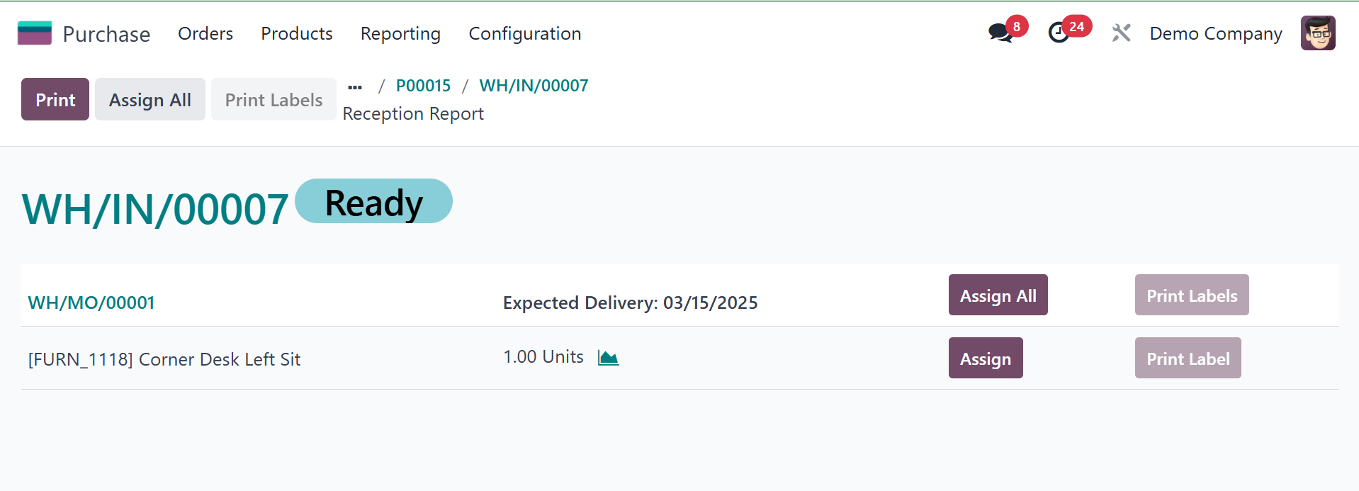 Odoo 18 Inventory module.