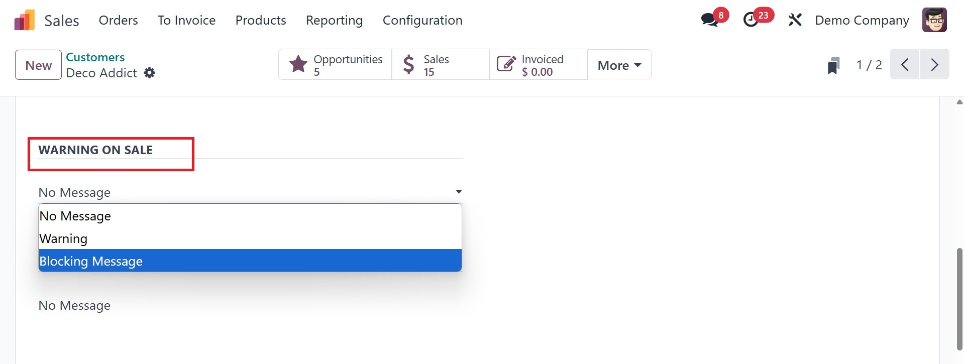 option of sales module.