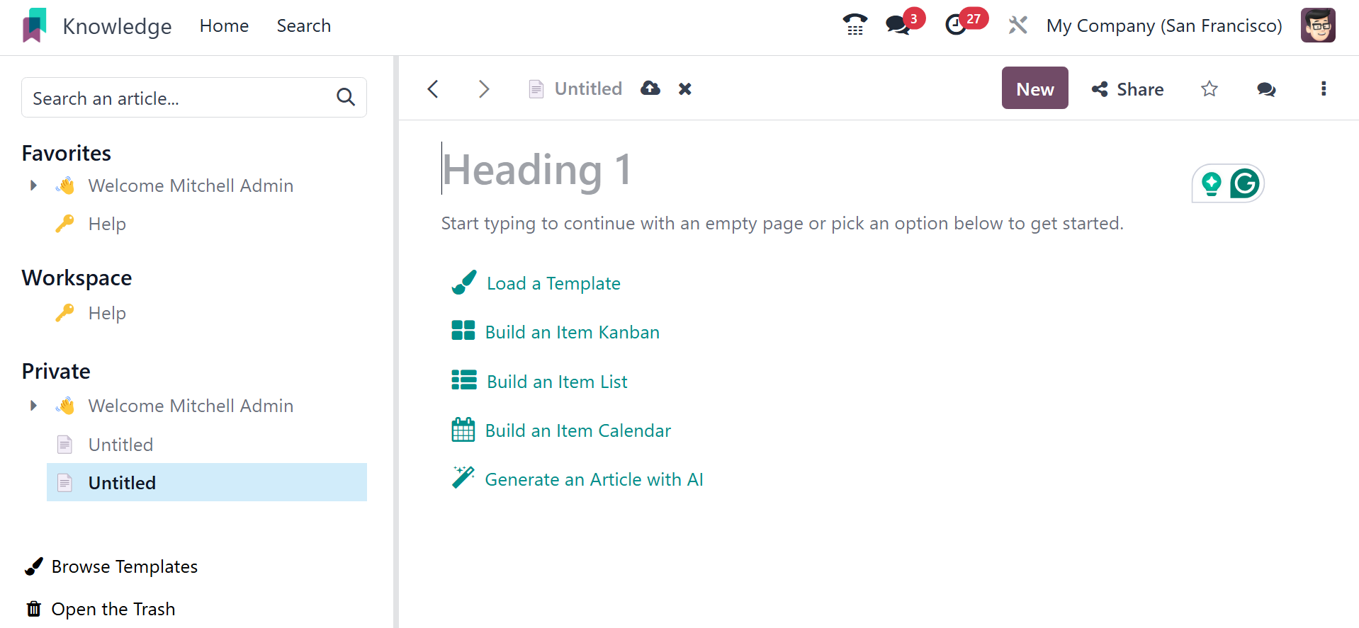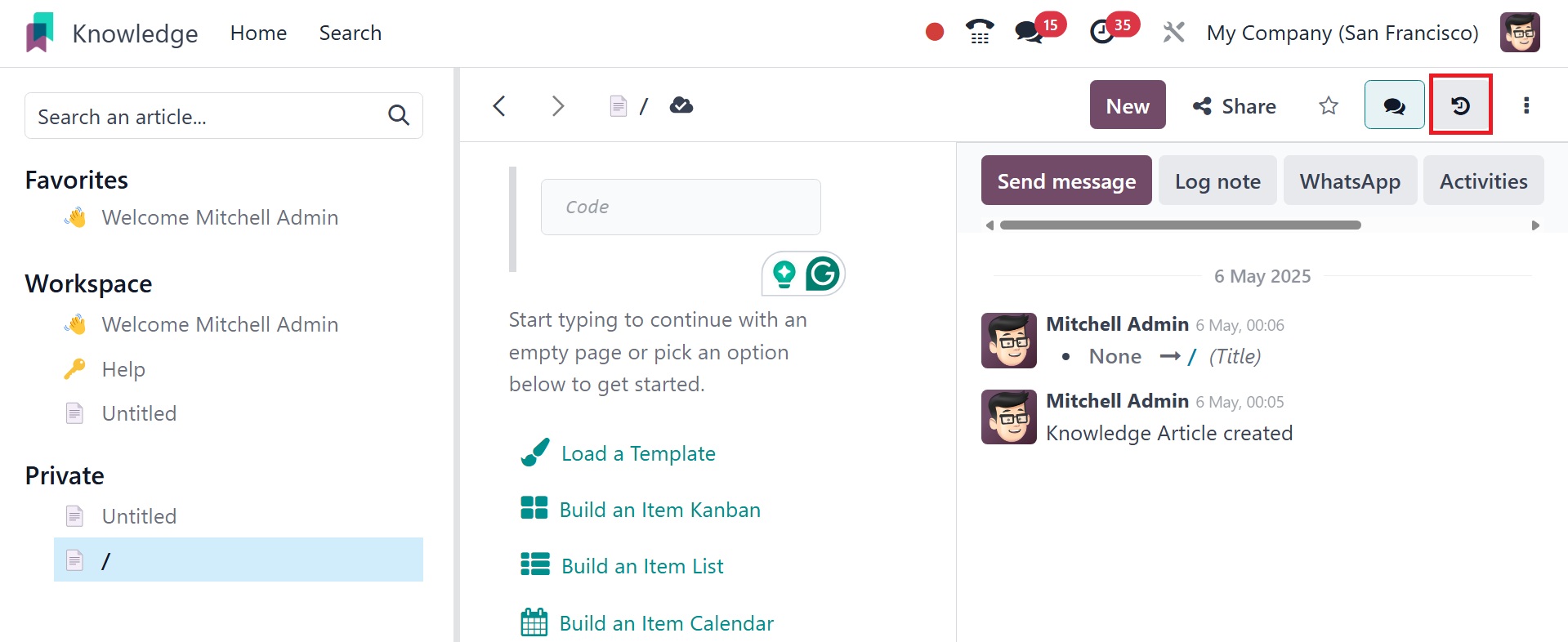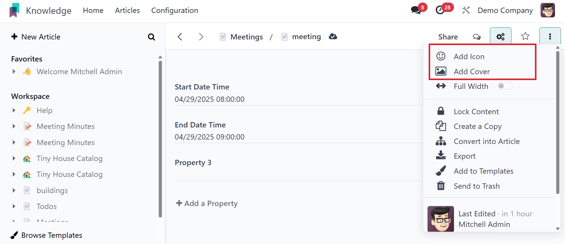 Name, Parent Article, Last Edited By, Last Edit Date, and Deletion