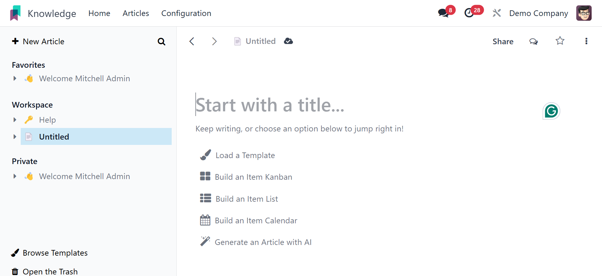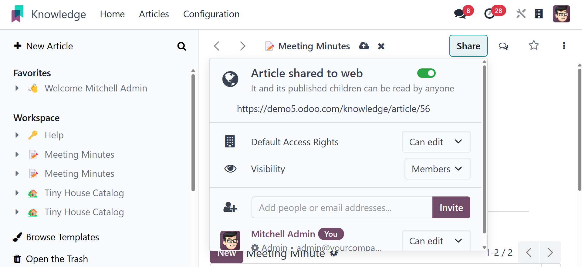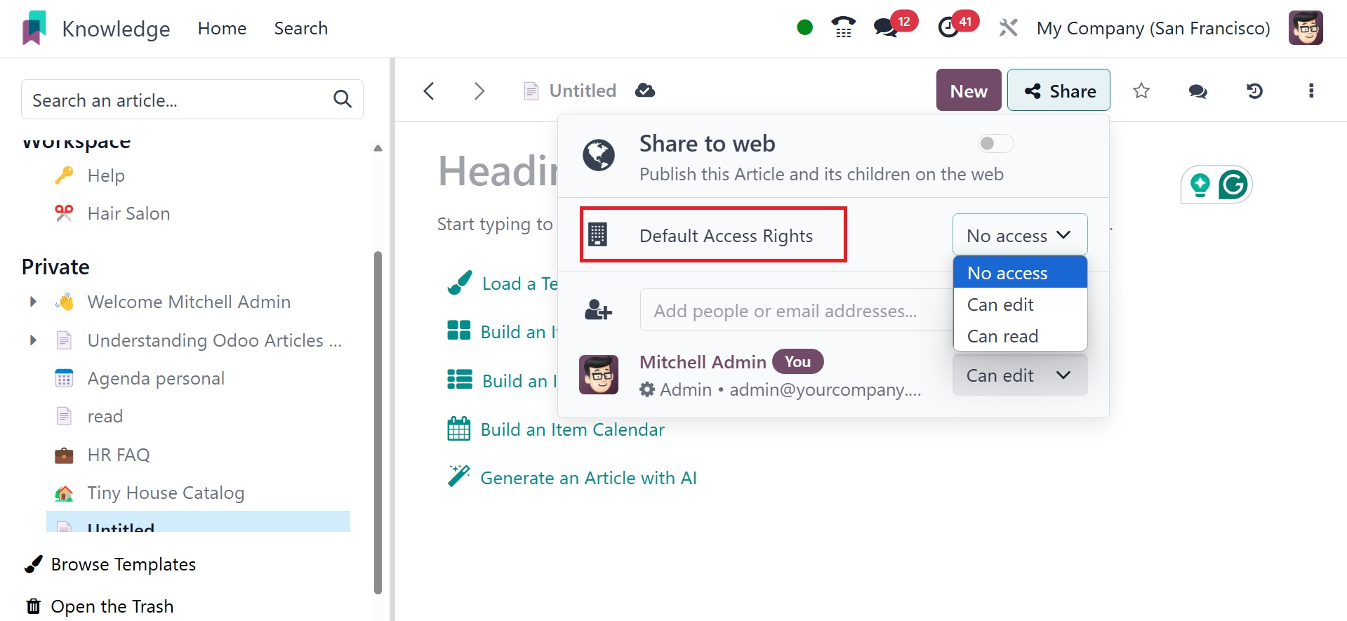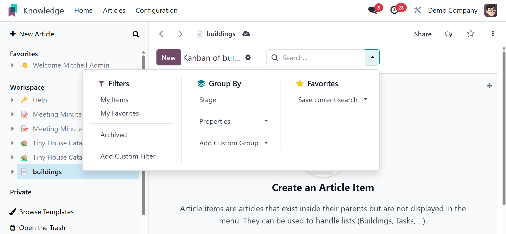 Name, Parent Article, Last Edited By, Last Edit Date, and Deletion