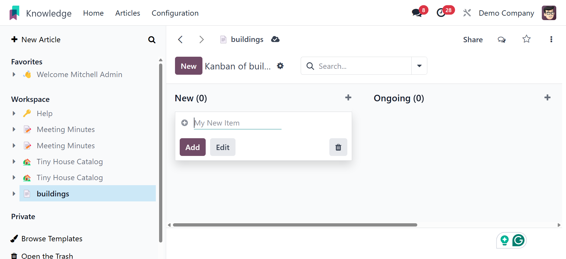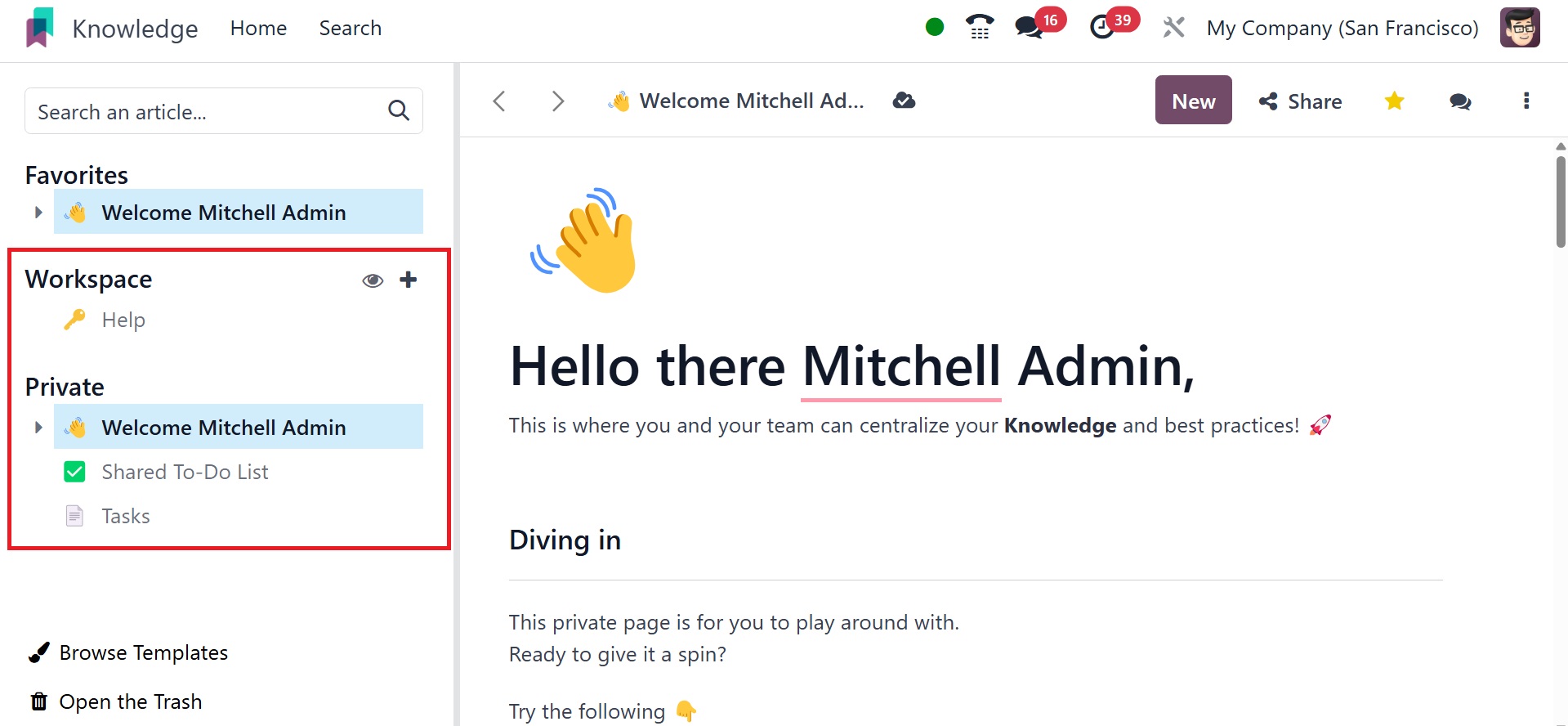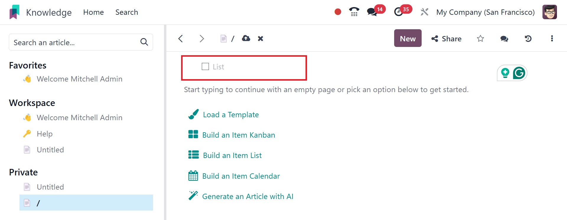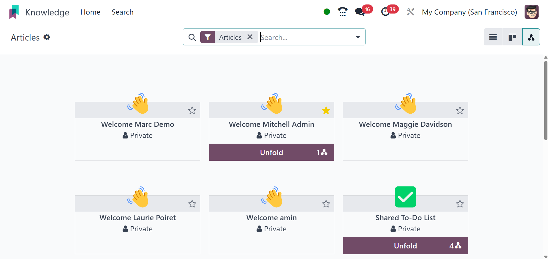 The page can be viewed in list, Kanban, and hierarchy views as well.