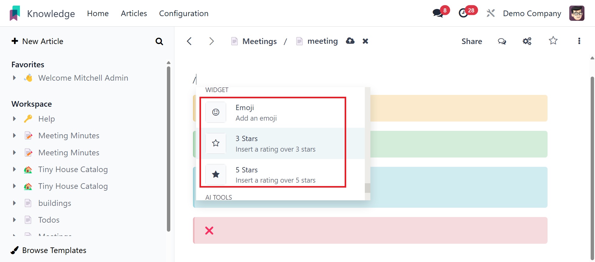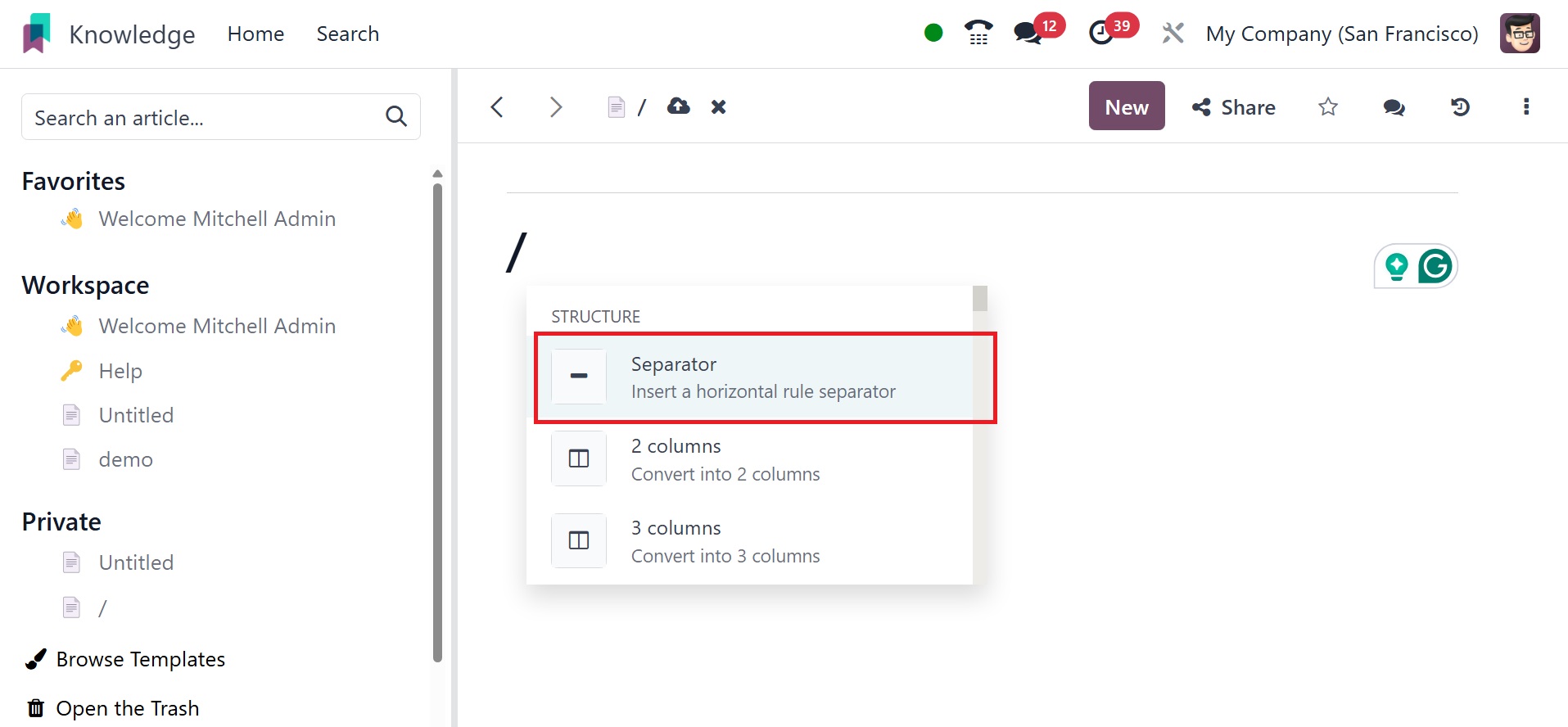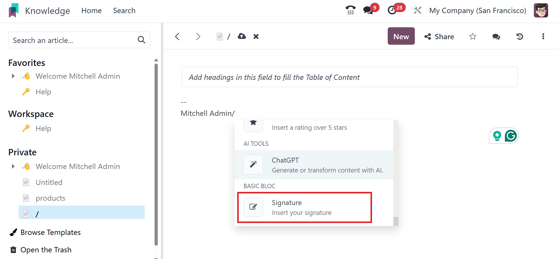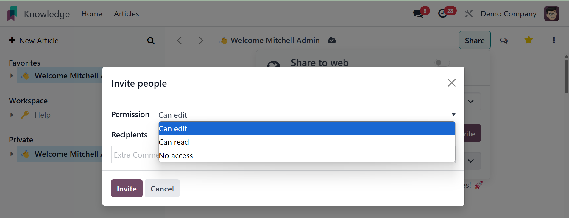 Choose the Lock option to secure your content. Odoo18 will not allow