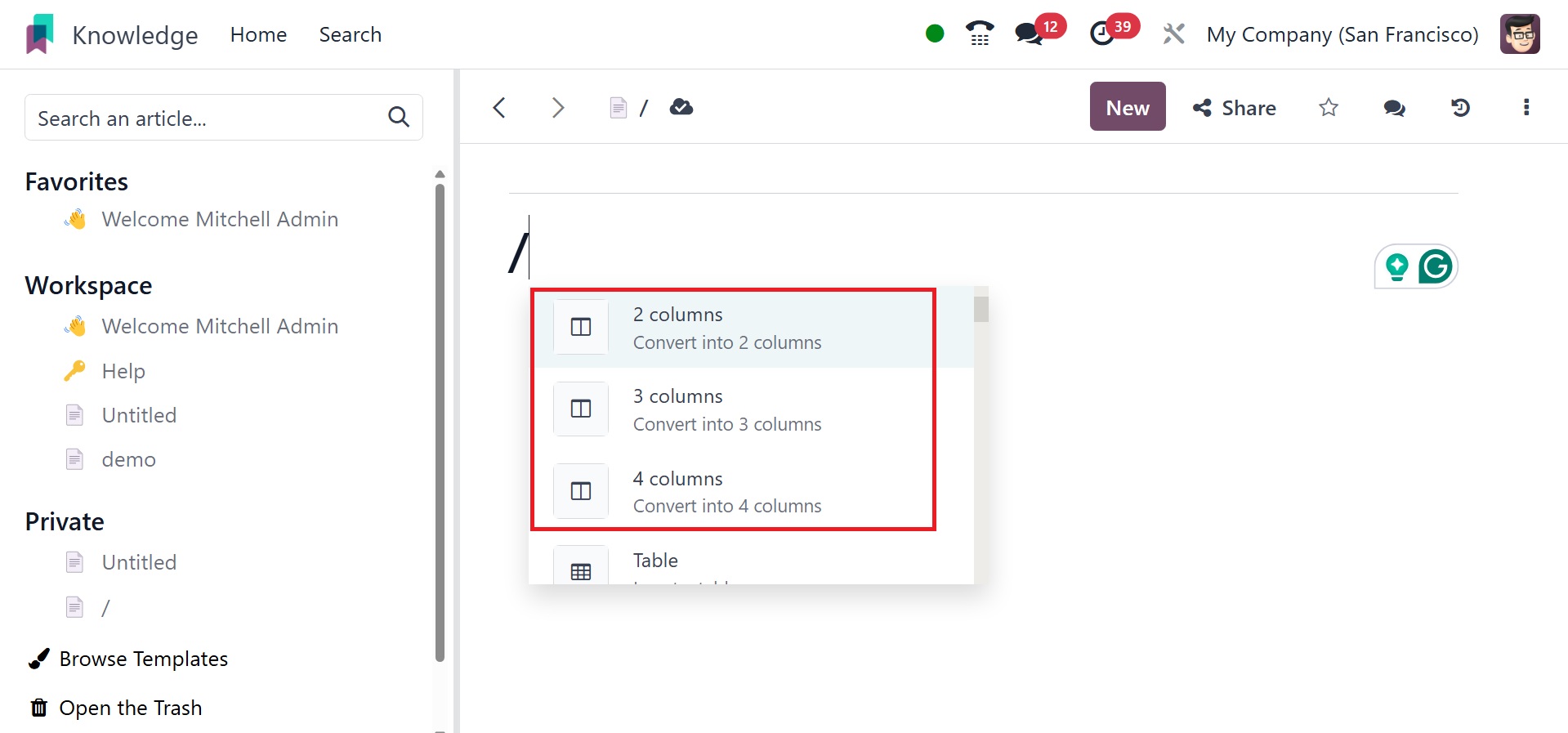 Columns: Columns can be added to article with 2 columns, 3 columns, 4