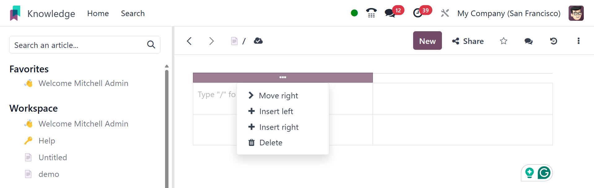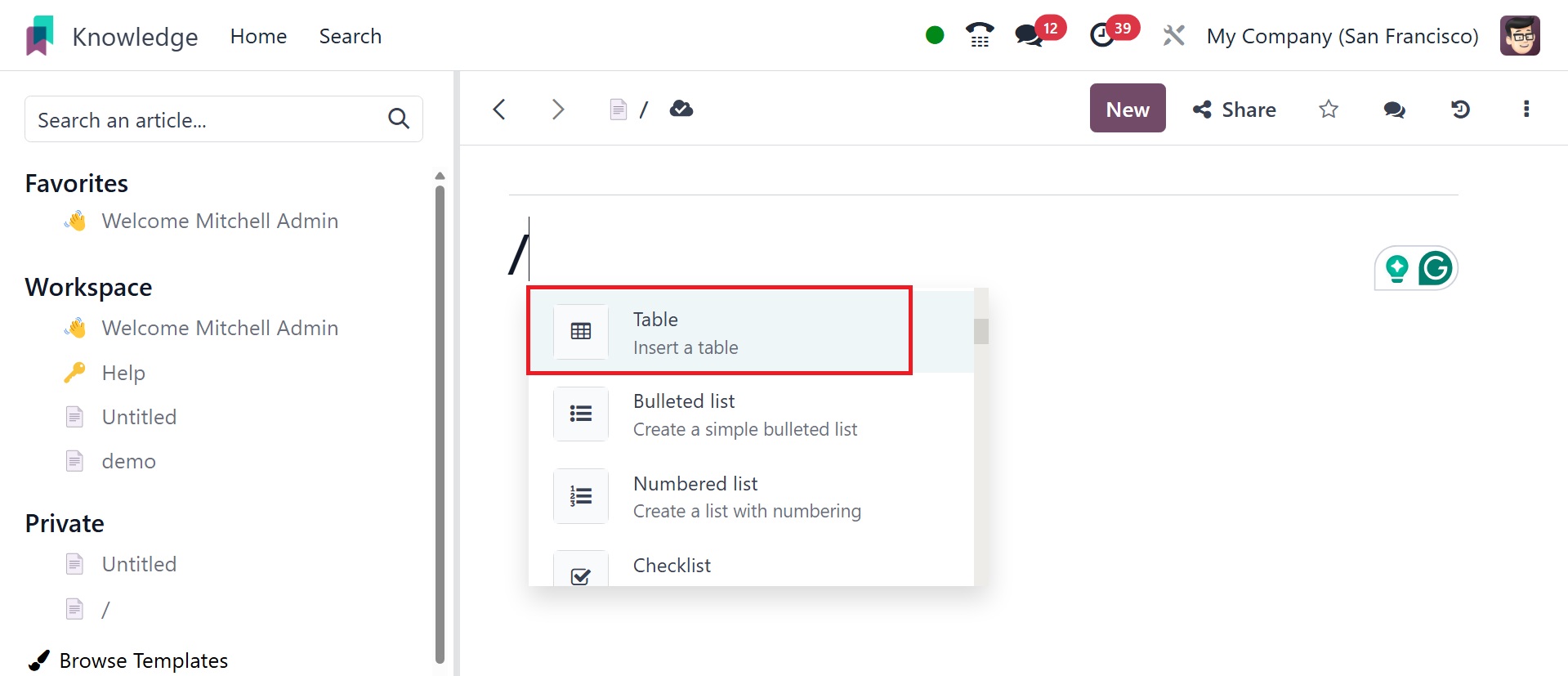 tabular form. The ‘/’ table helps one to add a table to the article.