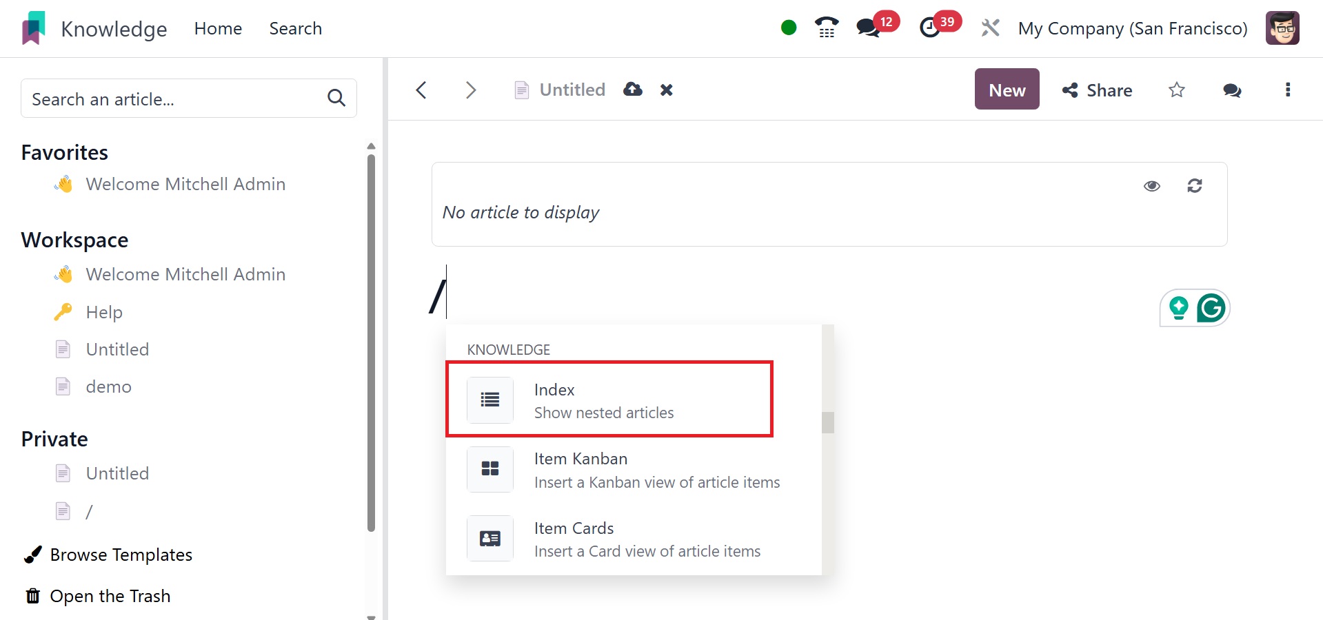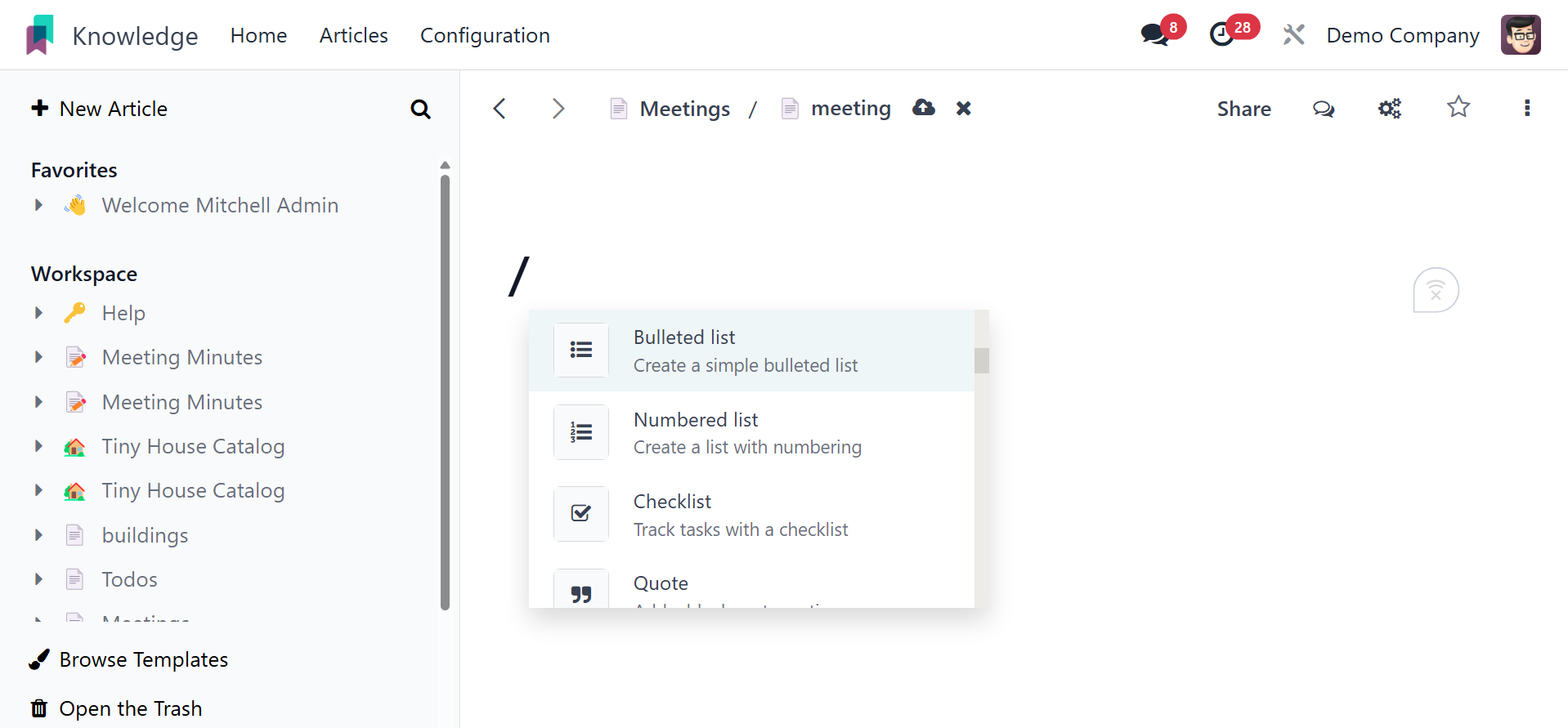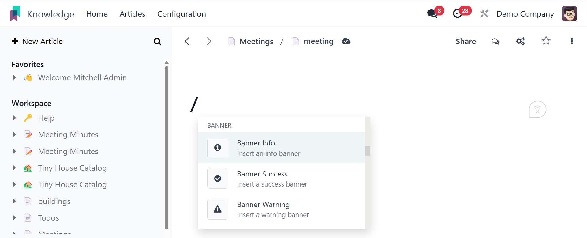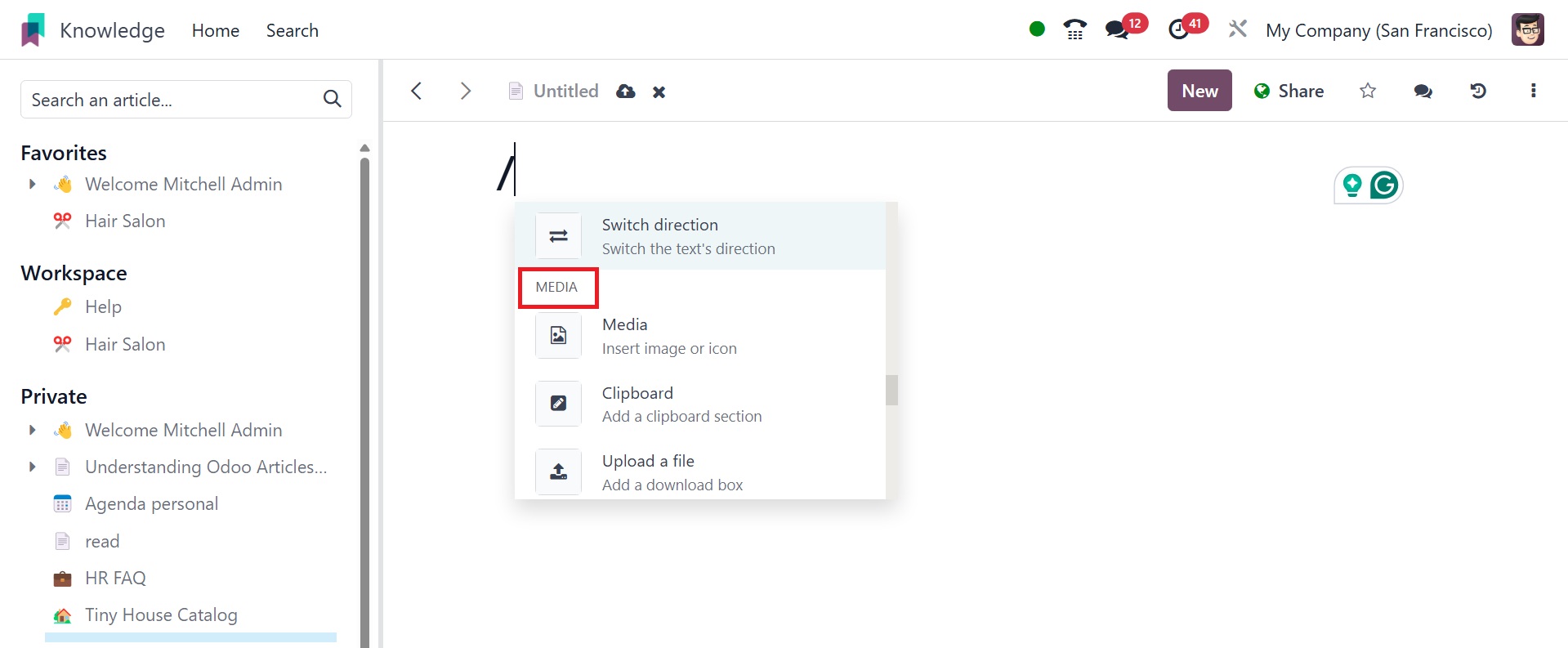 photographs, videos, and articles, by using the ‘/’ slash icon.