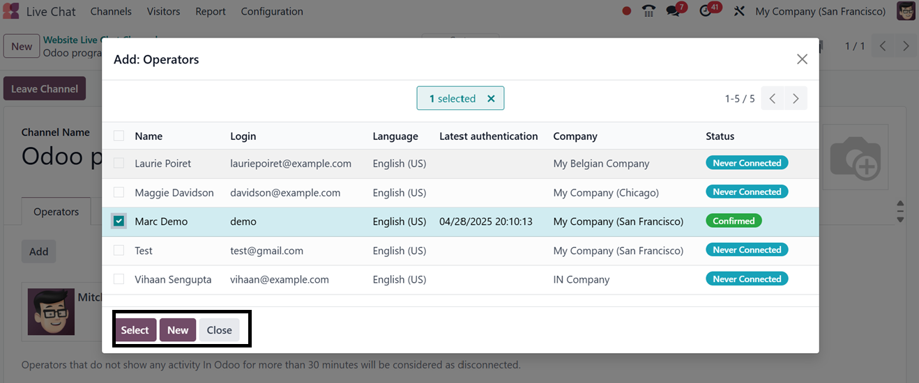 existing Live Chat channels