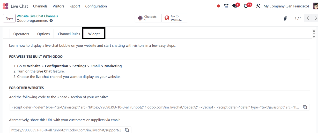Once a new Live Chat channel is