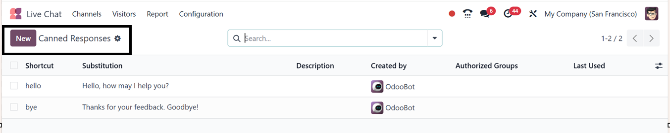 The ‘Configuration’ menu in the Live Chat module provides access to