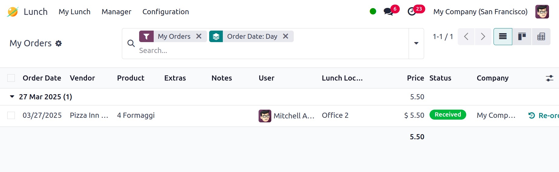 Lunch Location, Price, Status, and Company will all be displayed on