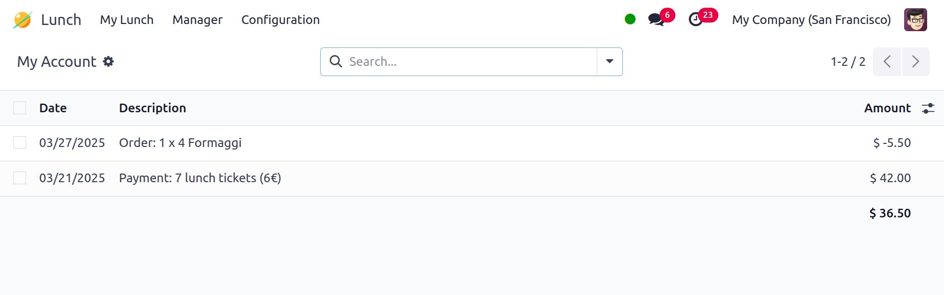 From the My Lunch menu, choose My Account History to view details