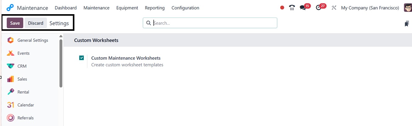 Maintenance Worksheets’ feature to give or restrict access to create