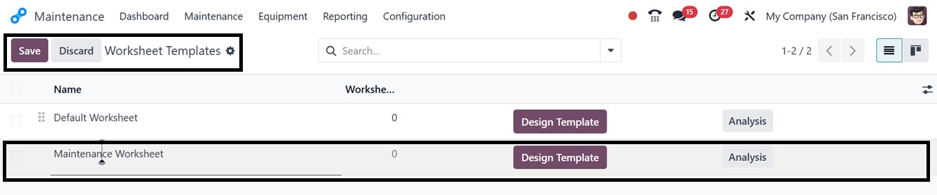 customized worksheets for different maintenance requests, as shown