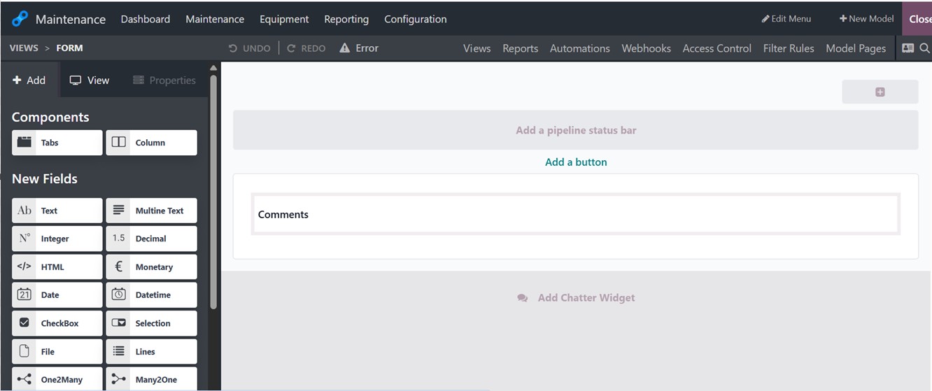 The Components and New Fields sections offer user-friendly